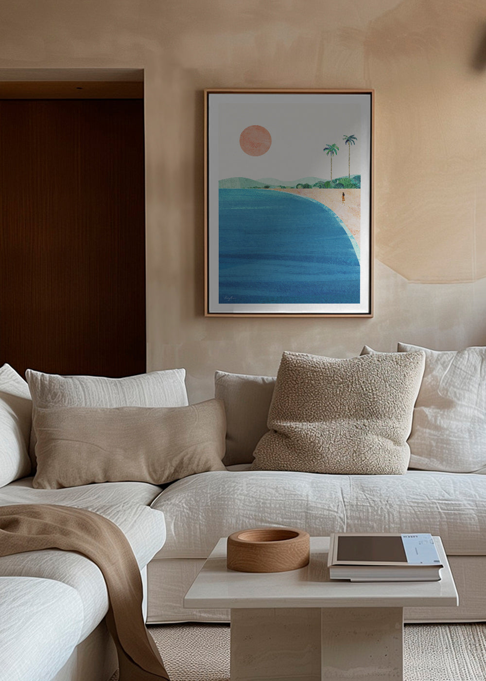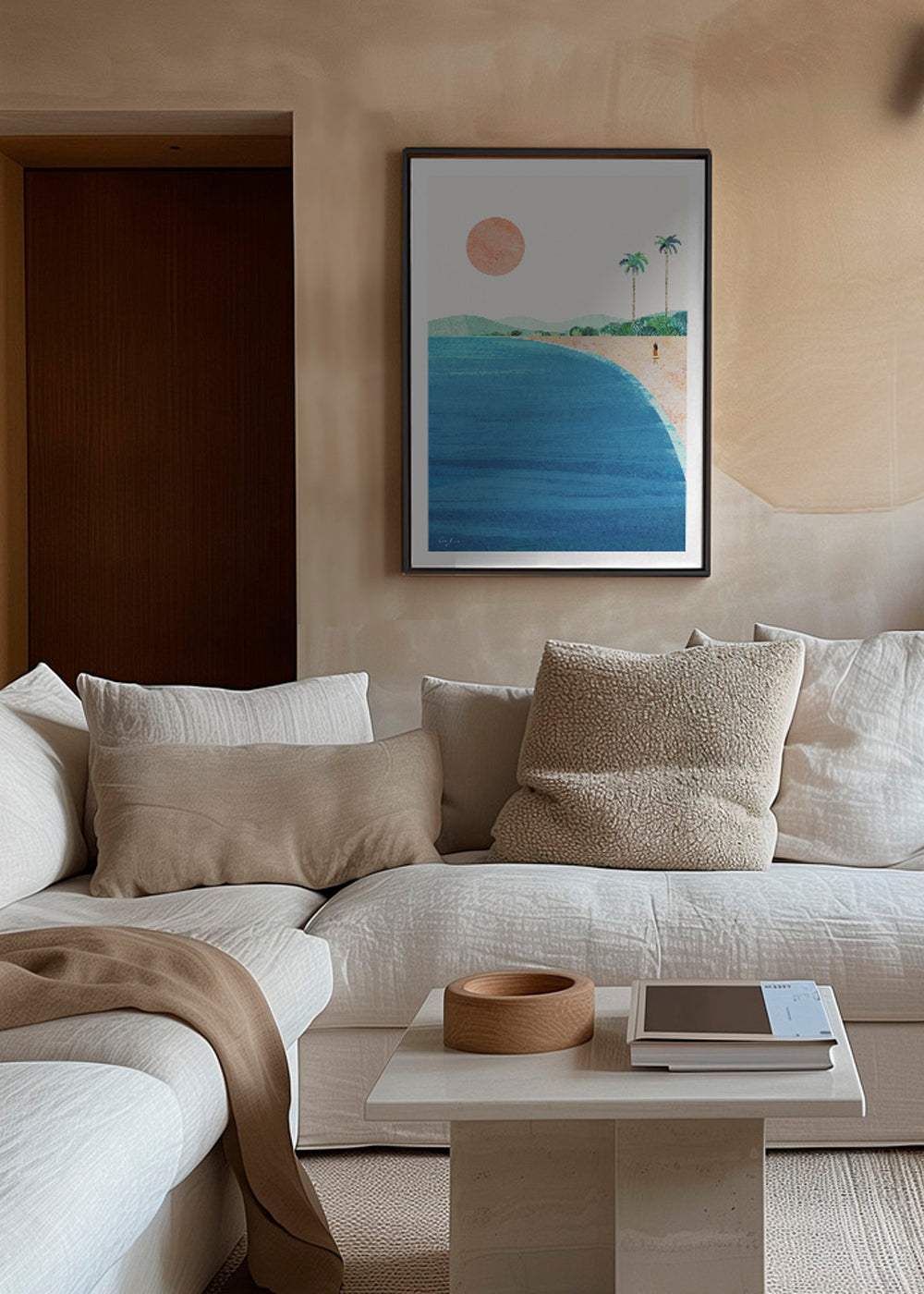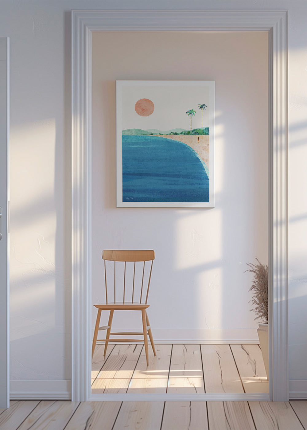 Ein Poster inspiriert durch die Kollektion von bilder und poster mit meer, des Kreativschöpfers Henry Rivers, mit Farbverlauf blau, und für die Bildpositionen vertikal. Die Ruhe und Freiheit die Wandbilder mit Landschaften verströmen ist einzigartig. Verschönere deine Inneneinrichtung mit Kunst.