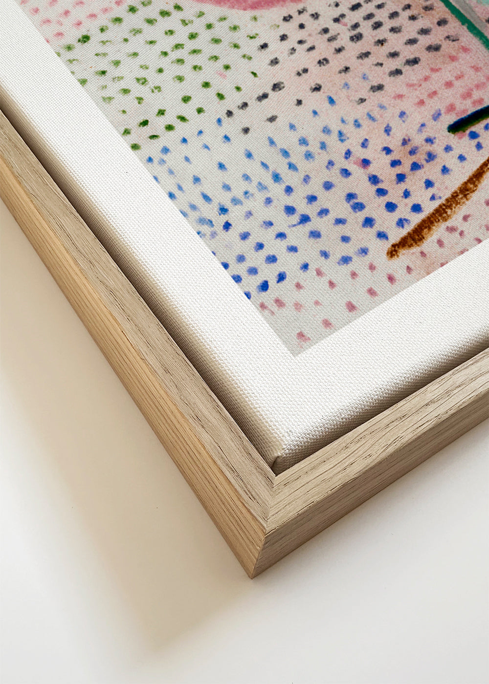 Alle unsere Rahmen werden in Spanien hergestellt. Die weißen, schwarzen und Eichenrahmen sind aus Ayous-Holz gefertigt, und die Eichenrahmen sind mit Eiche furniert, während die metallischen Rahmen aus Aluminium sind.
