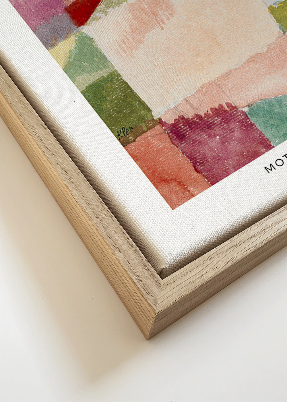 Wenn Sie die Passepartout-Option wählen, fügen wir die weiße matte Platte dem Rahmen hinzu und reduzieren das Design der Arbeit. Wählen Sie beispielsweise ein Druckformat 50x70 cm, mit eichenfarbenem Rahmen und Passepartout, reduzieren wir das Design des Druckes auf das bisherige Format (40x50cm). So passt es sich perfekt an das Innenfenster des Passepartouts an.