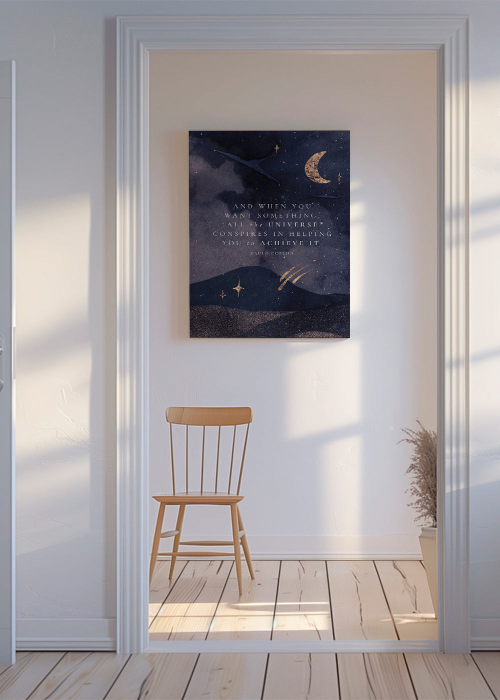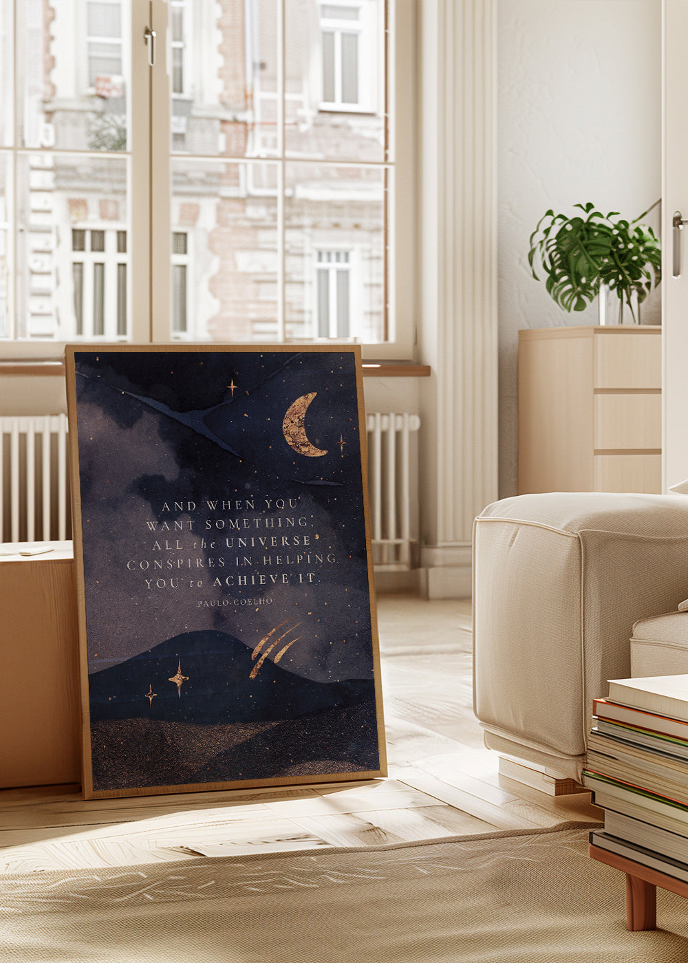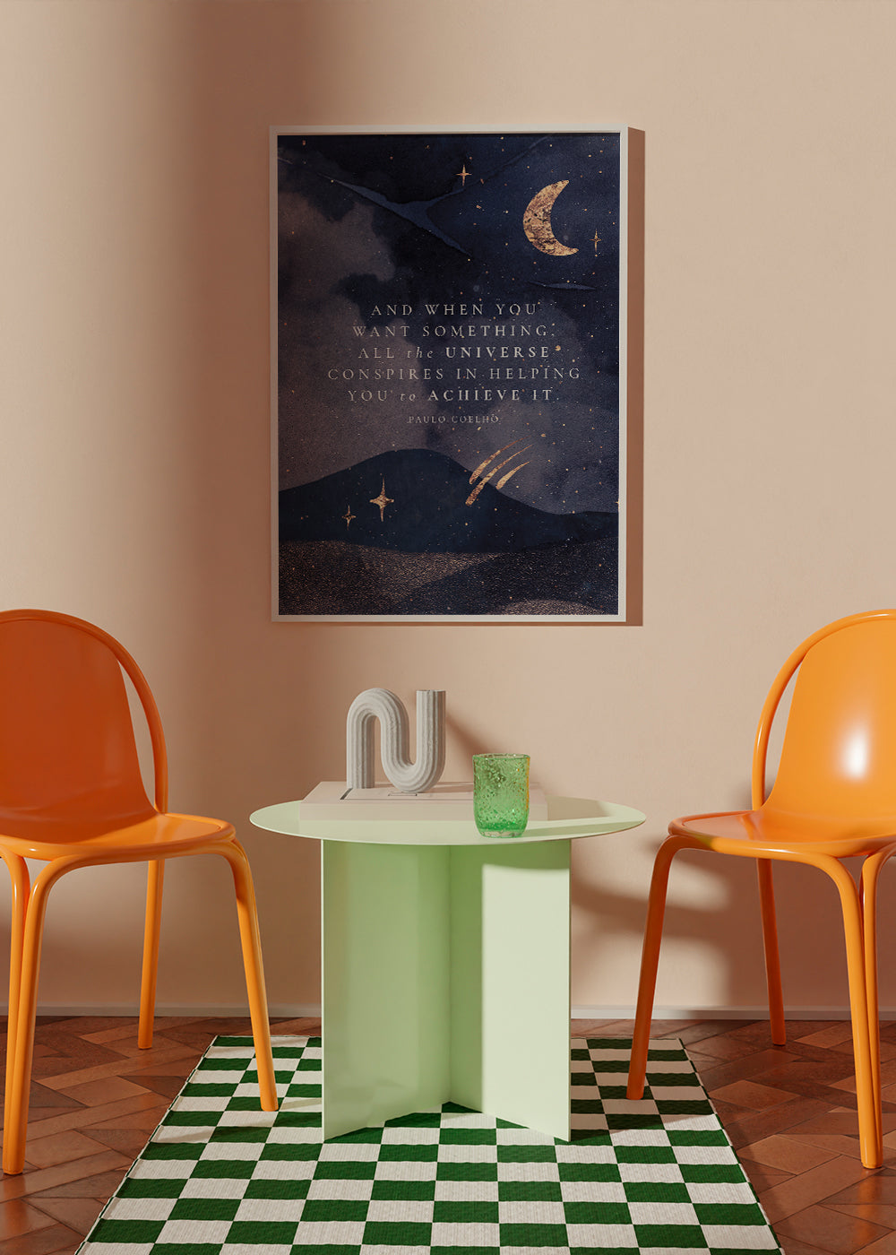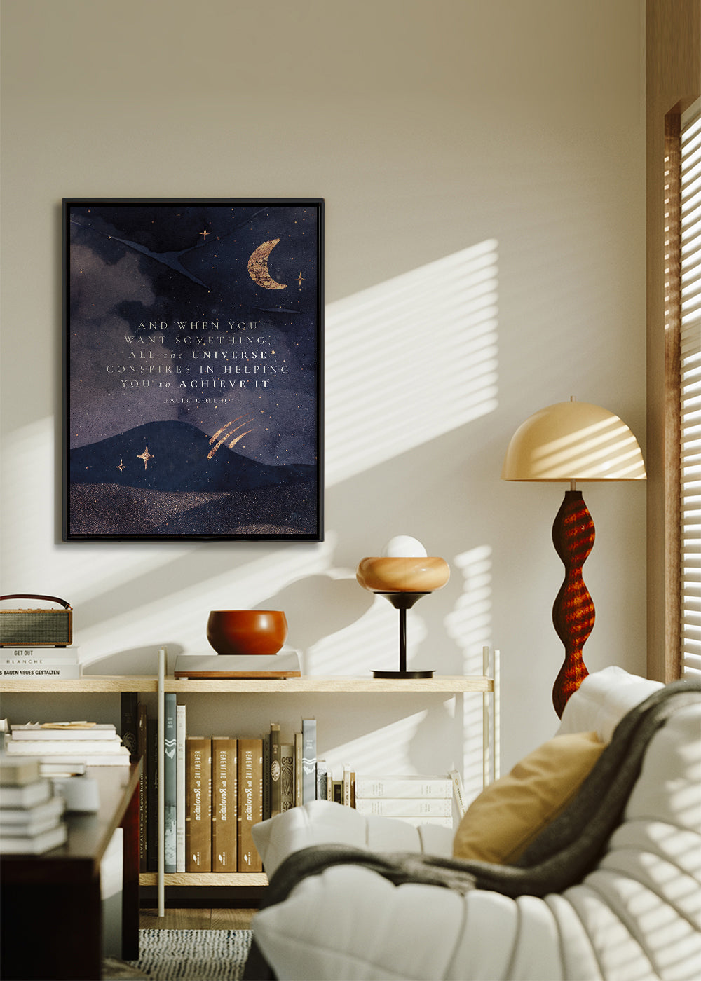 Ein Poster aus der Kollektion motivationsbilder, designed von Ana Ospina, mit Pigmenten blau, und mit Ausrichtung vertikal. Entspanne dich und lasse die Relax-Bilder auf dich einwirken. Dieses Kunstwerk ist ideal, um es mit anderen +Entspannungs-Bildern+ zu kombinieren. Wie du deine Wohnung einrichten möchtest, ist allein deine Entscheidung.