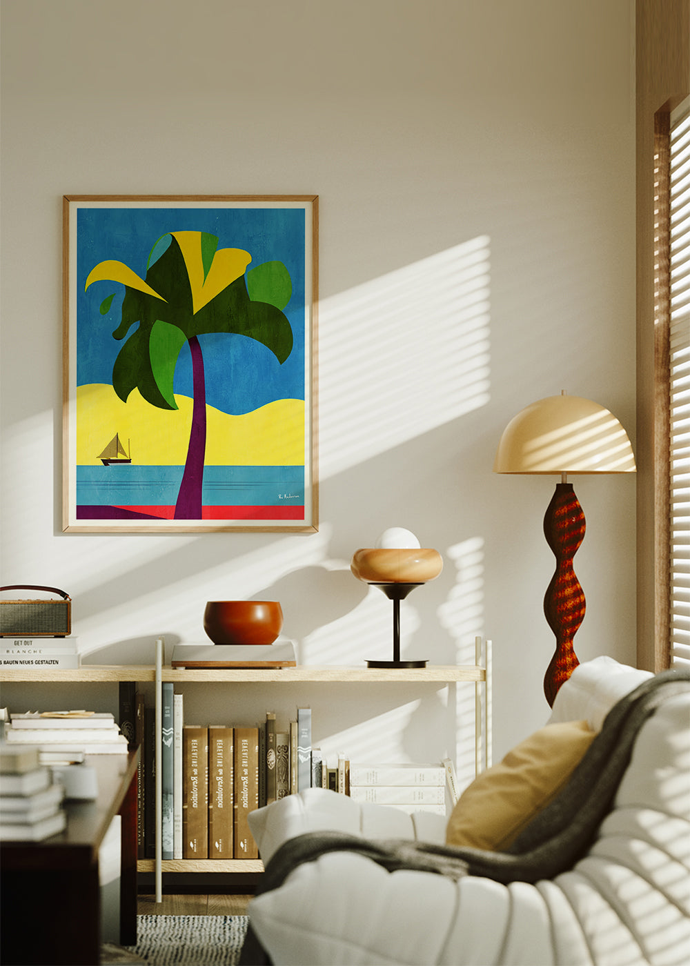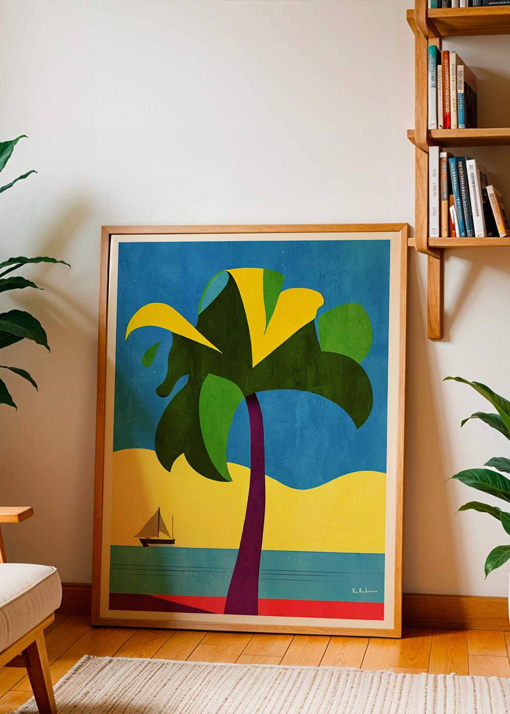 Ein Poster inspiriert durch die Kollektion von retro-poster und vintage-wandbilder, des Kreativschöpfers Bo Anderson, mit Farbtönen blau, und im Format vertikal. Verleihe deiner Inneneinrichtung mit diesem Wandbild im Retro-Style, in Kombination mit anderen, einen schönen Vintage-Touch. Kombiniere verschiedene Bilder, um eine Bilderwand nach deinem Stil zu gestalten.