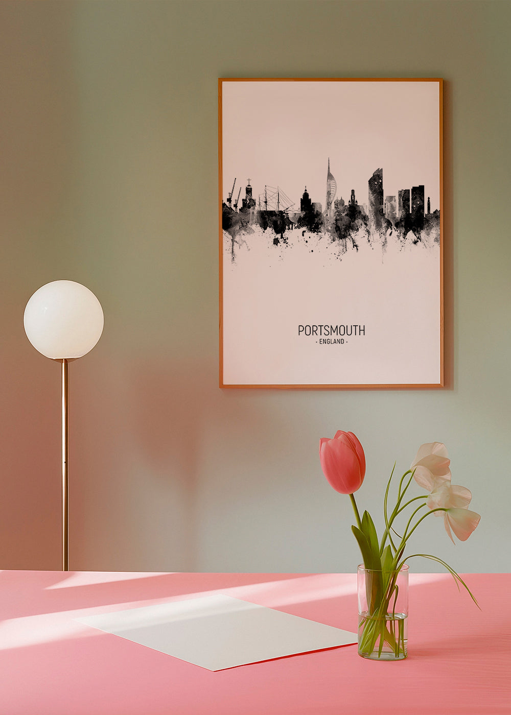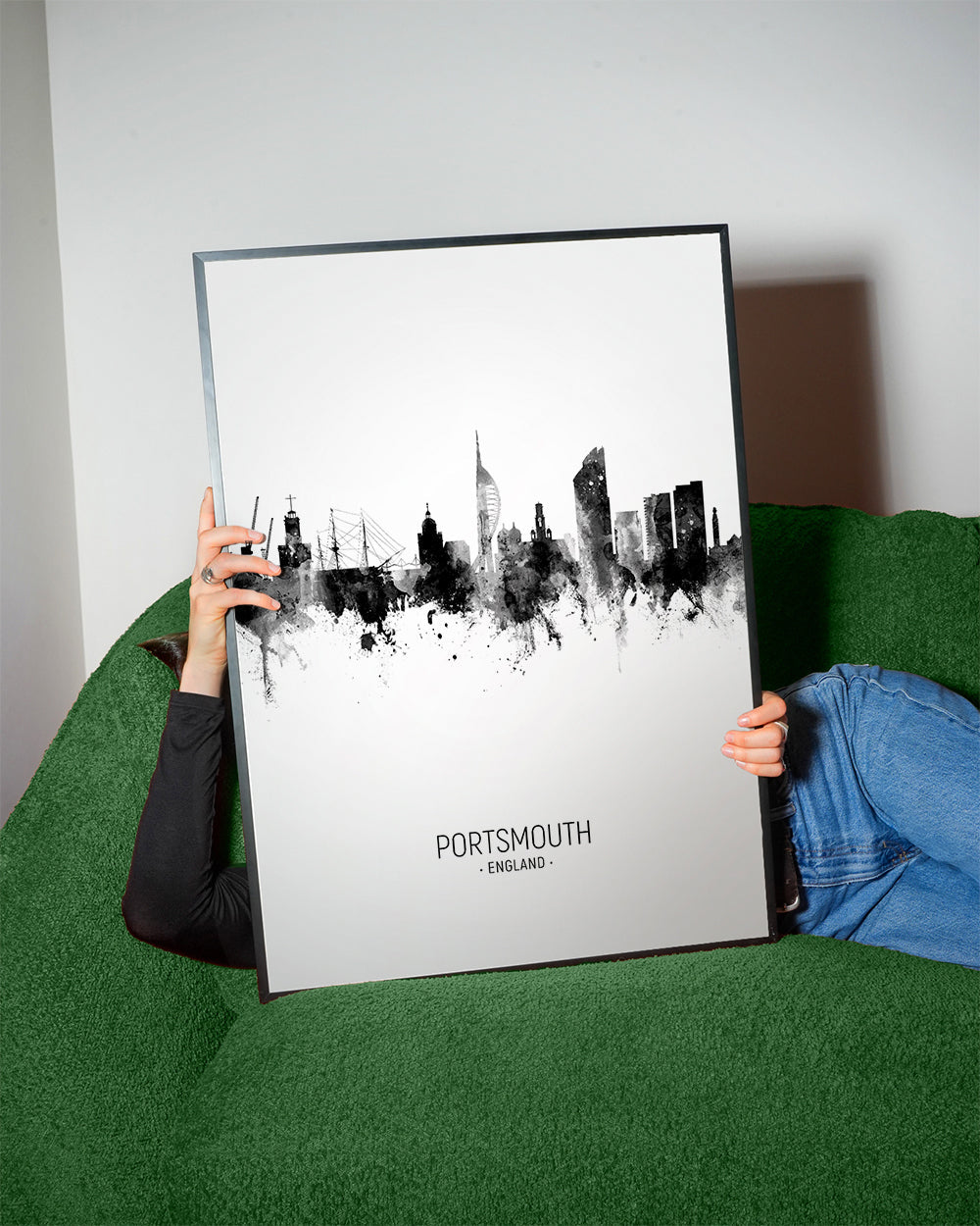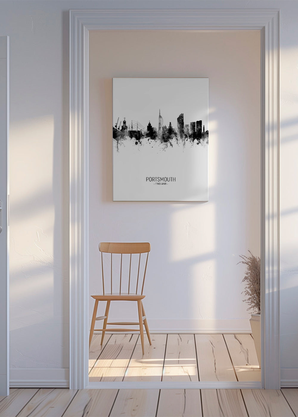 Scandi-Poster Portsmouth Skyline blanco y negro
