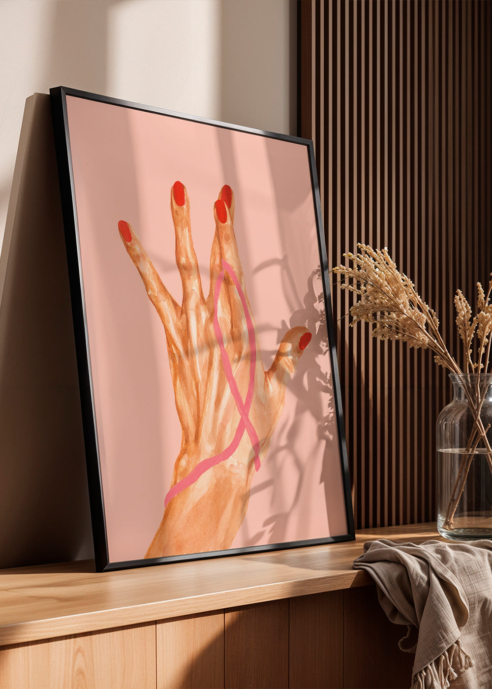 Ein Kunstdruck aus der Kollektion hand-bilder und poster mit hand-motiven, geschaffen von Sophia Novosel, mit Farbverlauf Rot, und im Format Vertikal. Illustration zählt zu der deutlichsten Ausdrucksform der bildenden Kunst. Dieses Wandbild lässt niemanden gleichgültig. Der letzte Schliff zur Einrichtung deiner Wohnung.