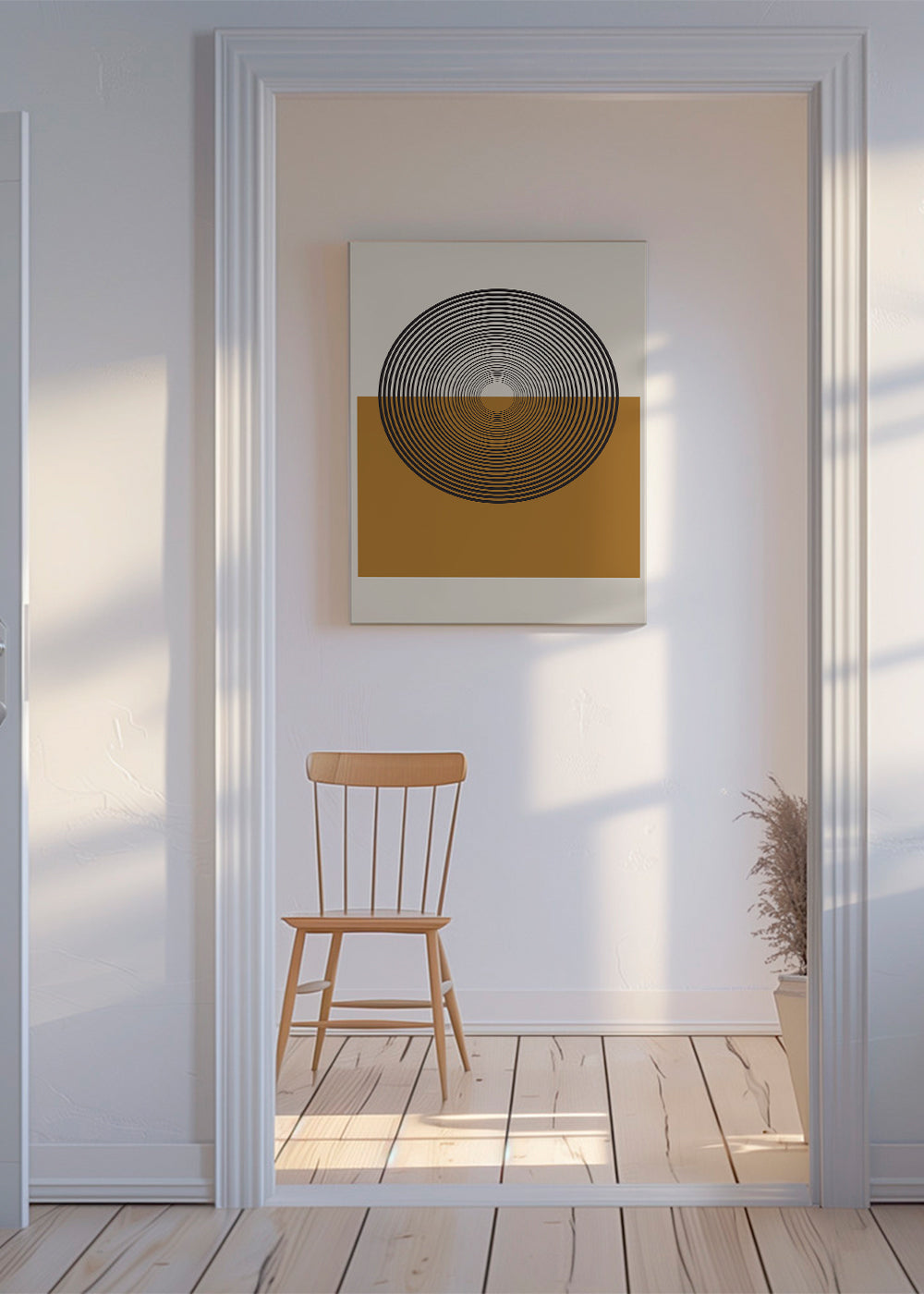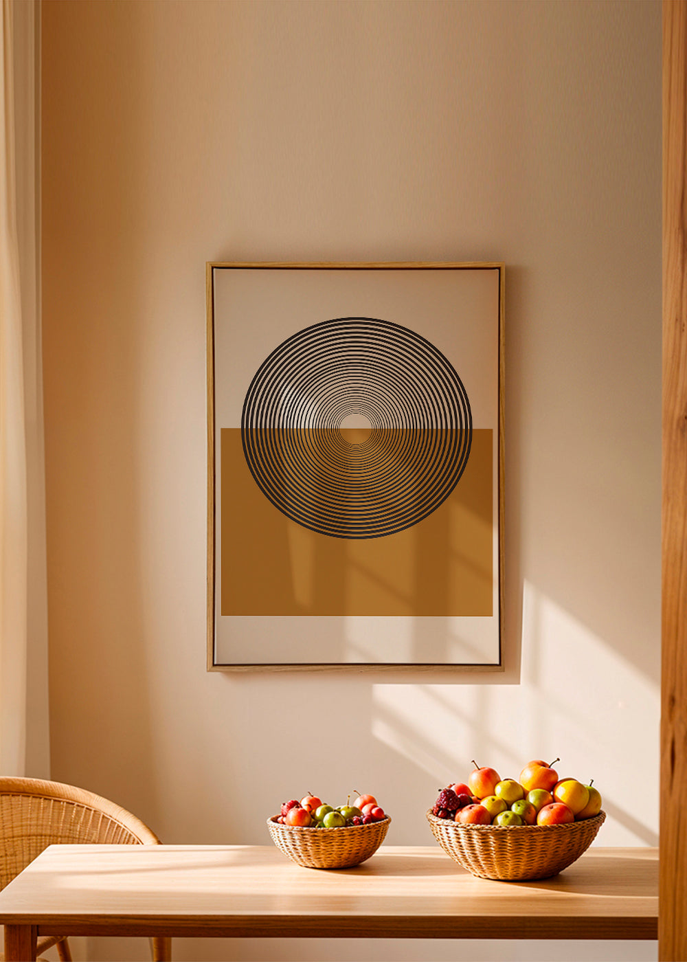 Wenn Sie die Passepartout-Option wählen, fügen wir die weiße matte Platte dem Rahmen hinzu und reduzieren das Design der Arbeit. Wählen Sie beispielsweise ein Druckformat 50x70 cm, mit eichenfarbenem Rahmen und Passepartout, reduzieren wir das Design des Druckes auf das bisherige Format (40x50cm). So passt es sich perfekt an das Innenfenster des Passepartouts an.