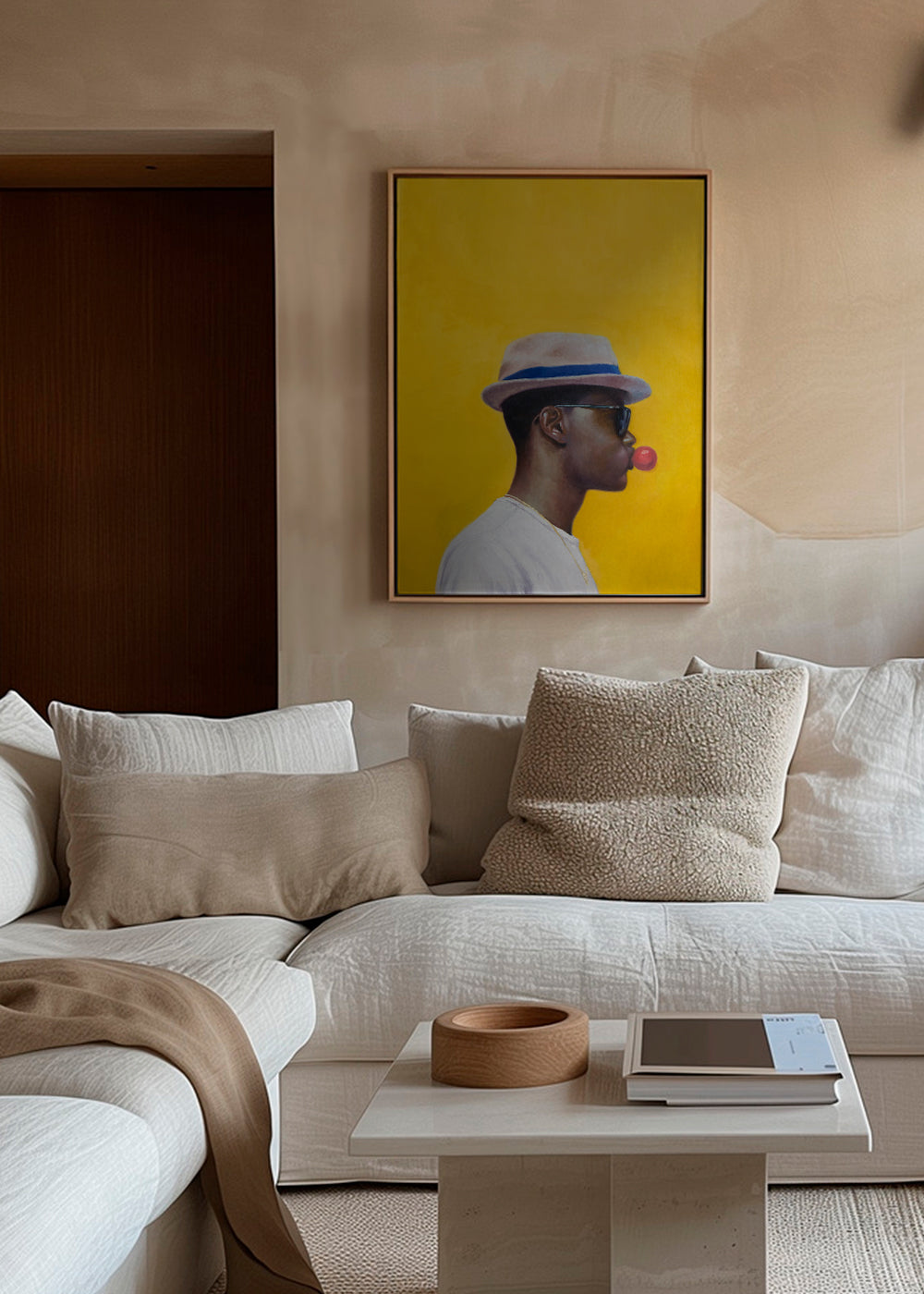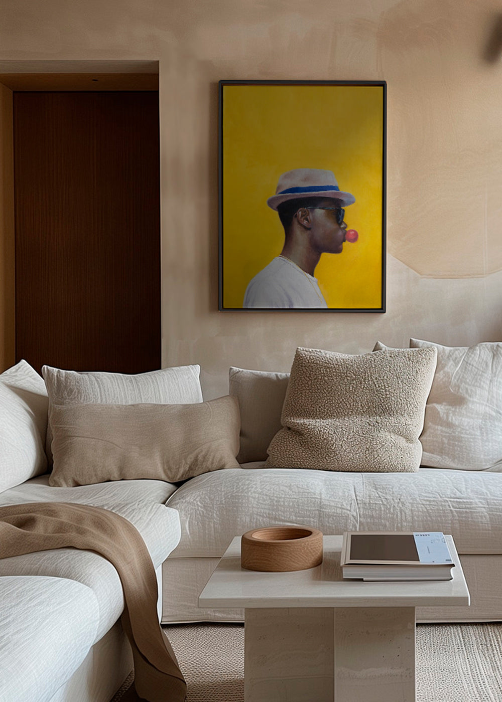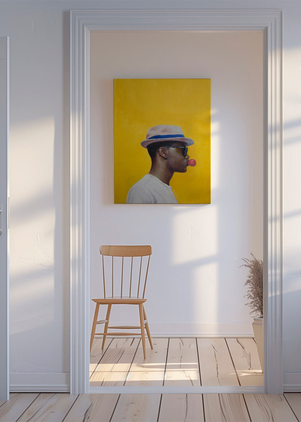 Dieses Kunstwerk Im Stil unserer bilder mit gesichtern, designed von Alexander Grahovsky, mit Schattierungen Gelb, und ideal für die Bildposition Vertikal. Wandbilder mit Zeichnungen und Skizzen verleihen jeder Inneneinrichtung einen originellen Touch. Verleihe deinen Zimmern mit Kunst einen neuen Look.