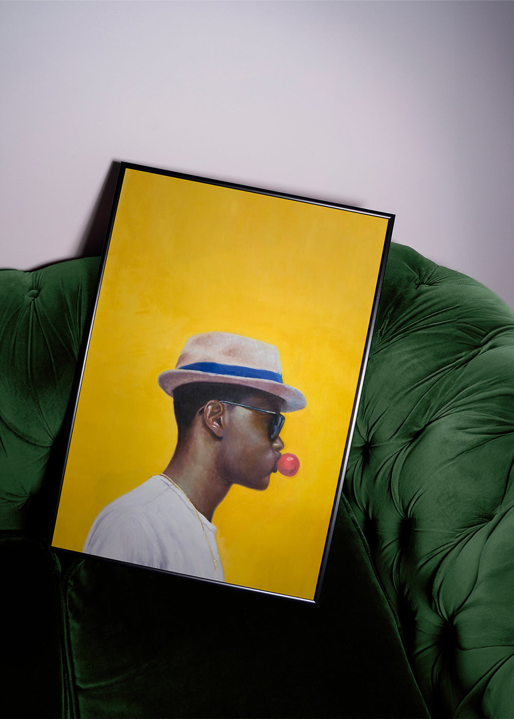 Das Passepartout ist eine weiße, matte Pappe, die das Poster umgibt, um es vor Methacrylat zu schützen, und die auch die Ausdruckskraft der Arbeit verstärkt und Details hervorhebt.