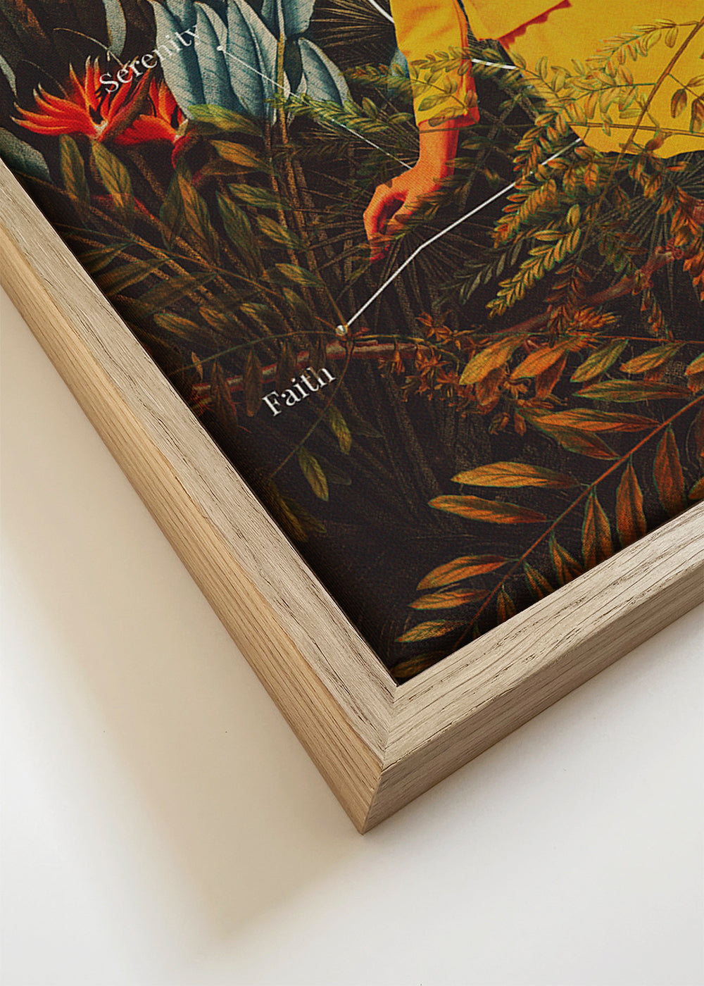 Wenn Sie die Passepartout-Option wählen, fügen wir die weiße matte Platte dem Rahmen hinzu und reduzieren das Design der Arbeit. Wählen Sie beispielsweise ein Druckformat 50x70 cm, mit eichenfarbenem Rahmen und Passepartout, reduzieren wir das Design des Druckes auf das bisherige Format (40x50cm). So passt es sich perfekt an das Innenfenster des Passepartouts an.