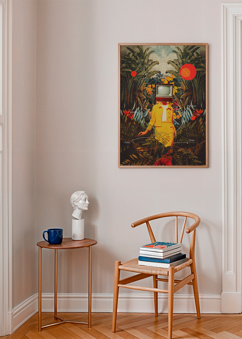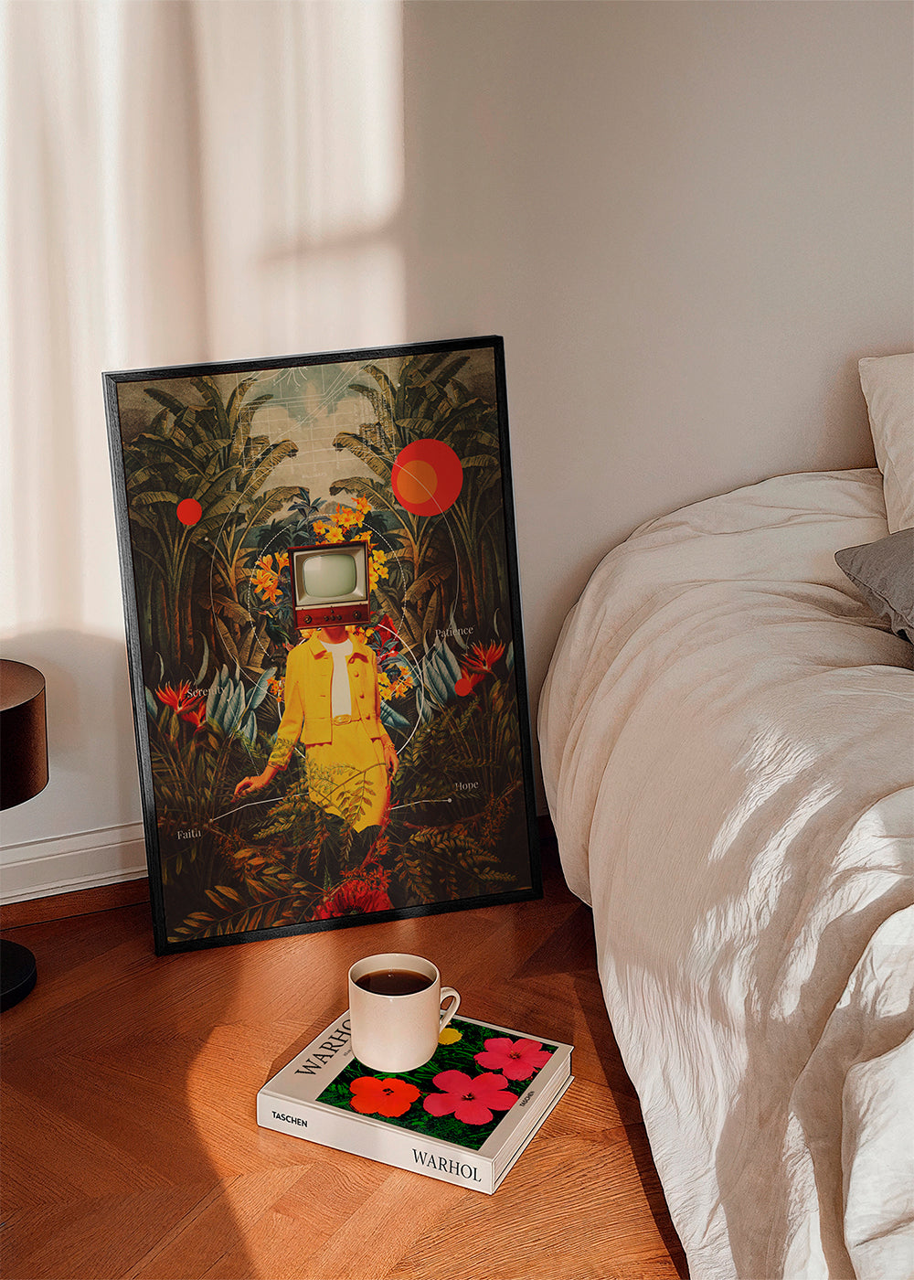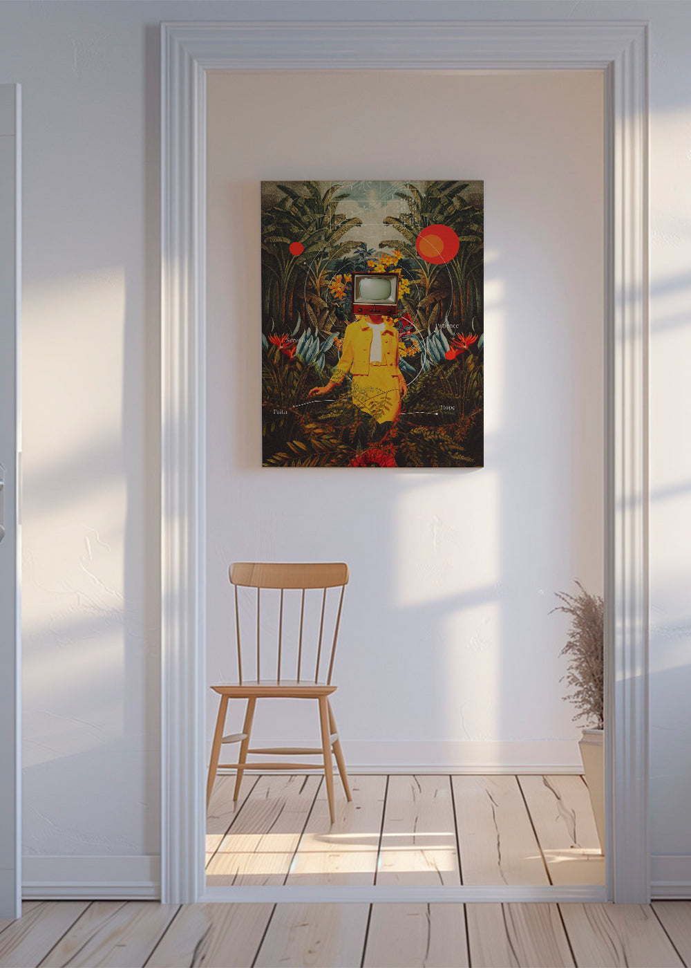 Das Passepartout ist eine weiße, matte Pappe, die das Poster umgibt, um es vor Methacrylat zu schützen, und die auch die Ausdruckskraft der Arbeit verstärkt und Details hervorhebt.