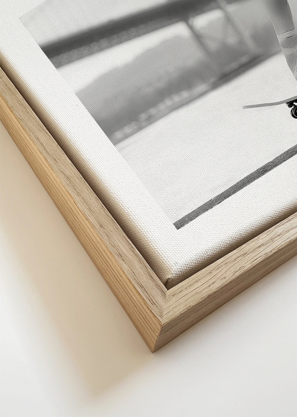 Alle unsere Rahmen werden in Spanien hergestellt. Die weißen, schwarzen und Eichenrahmen sind aus Ayous-Holz gefertigt, und die Eichenrahmen sind mit Eiche furniert, während die metallischen Rahmen aus Aluminium sind.