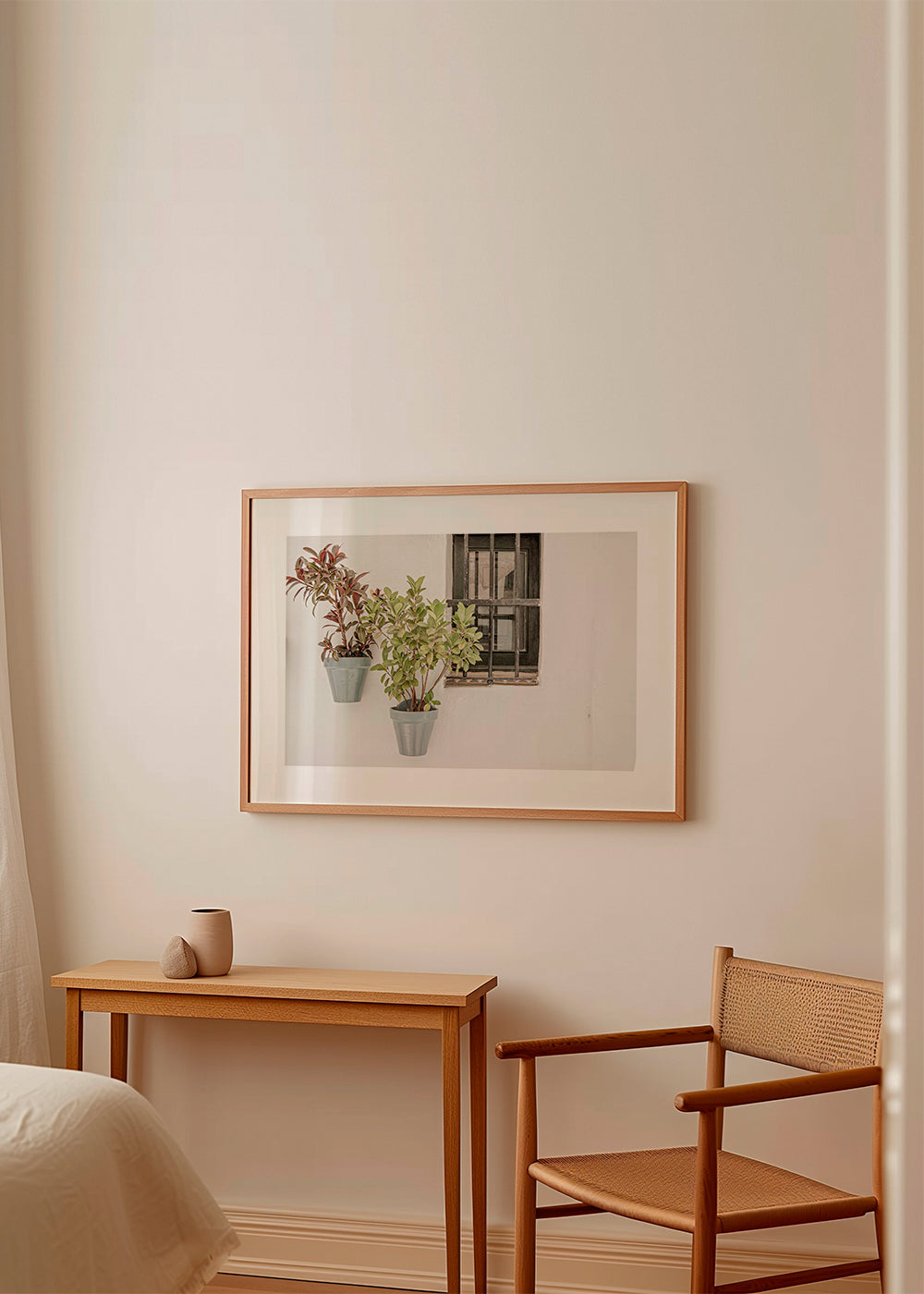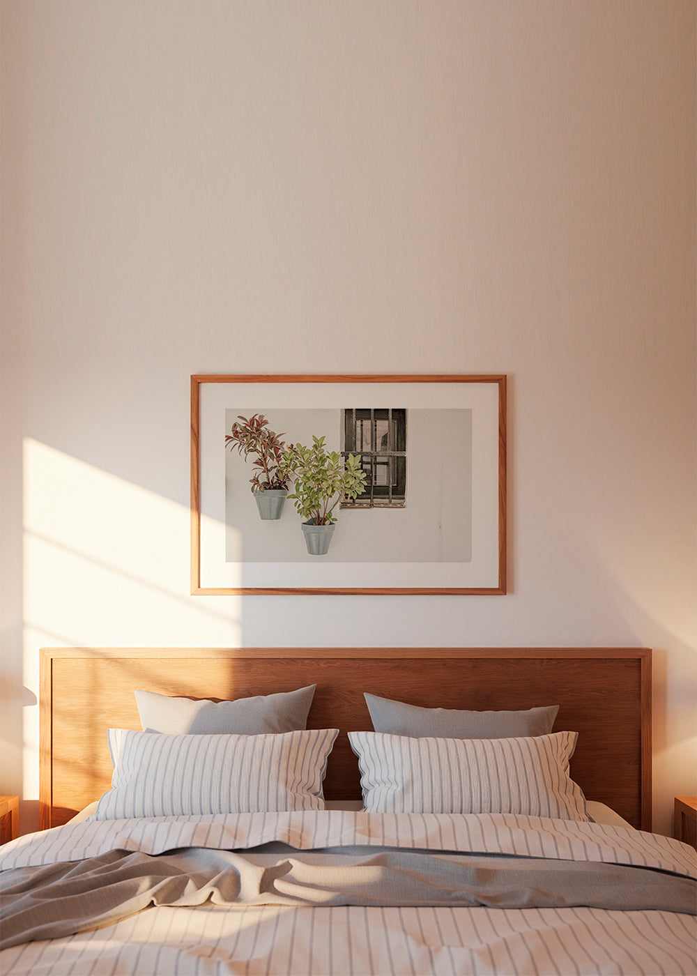 Wenn Sie die Passepartout-Option wählen, fügen wir die weiße matte Platte dem Rahmen hinzu und reduzieren das Design der Arbeit. Wählen Sie beispielsweise ein Druckformat 50x70 cm, mit eichenfarbenem Rahmen und Passepartout, reduzieren wir das Design des Druckes auf das bisherige Format (40x50cm). So passt es sich perfekt an das Innenfenster des Passepartouts an.