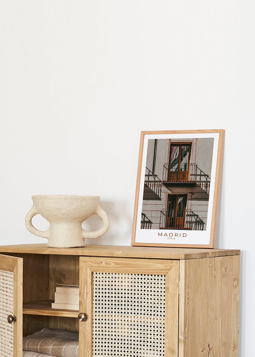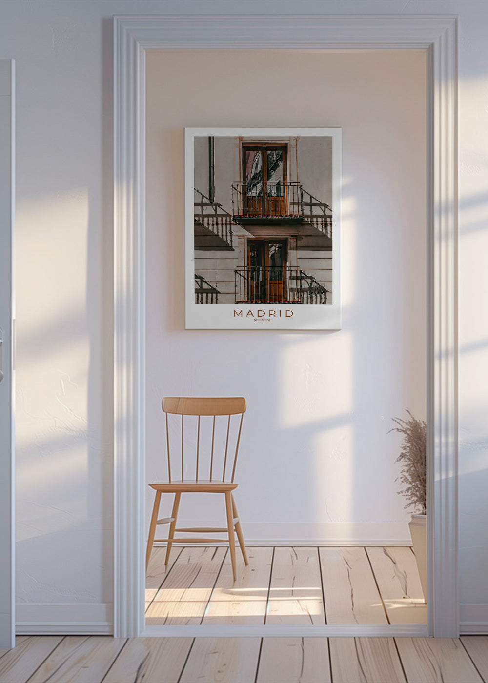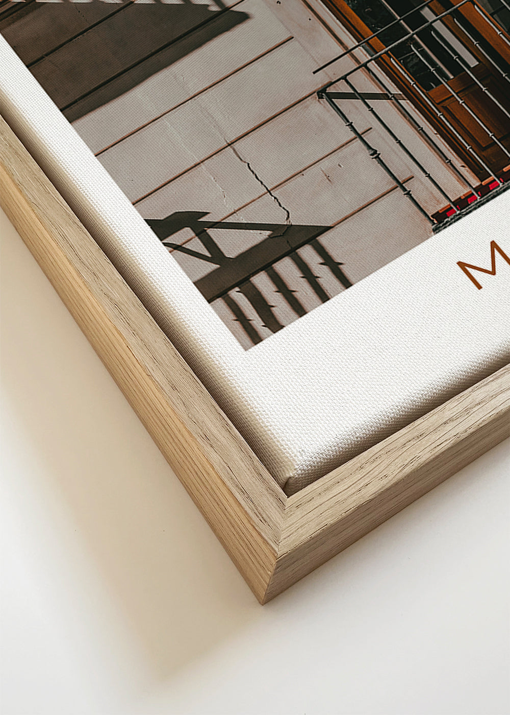 Alle unsere Rahmen werden in Spanien hergestellt. Die weißen, schwarzen und Eichenrahmen sind aus Ayous-Holz gefertigt, und die Eichenrahmen sind mit Eiche furniert, während die metallischen Rahmen aus Aluminium sind.