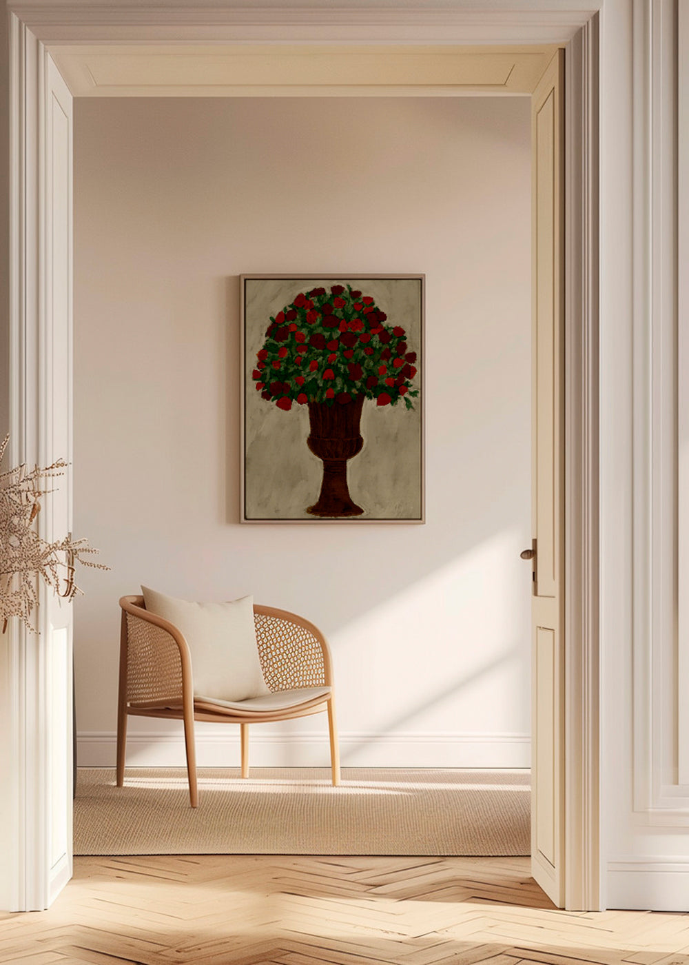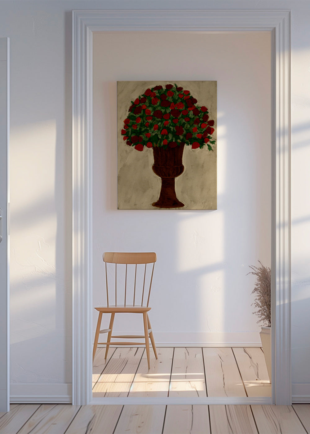 Ein Kunstwerk gehört zum Thema wandbilder mit blumen und pflanzen, Originalbild von Shatha Dafai, mit einem Hauch von mehrfarbig, und mit Ausrichtung vertikal. Es ist eine schlichte Zeichnung mit sauberer Linienführung – kombiniere sie mit anderen Strich- und Linienzeichnungen für eine künstlerische Bilderwand. Unverfälschte Kunst und authentisches Design.