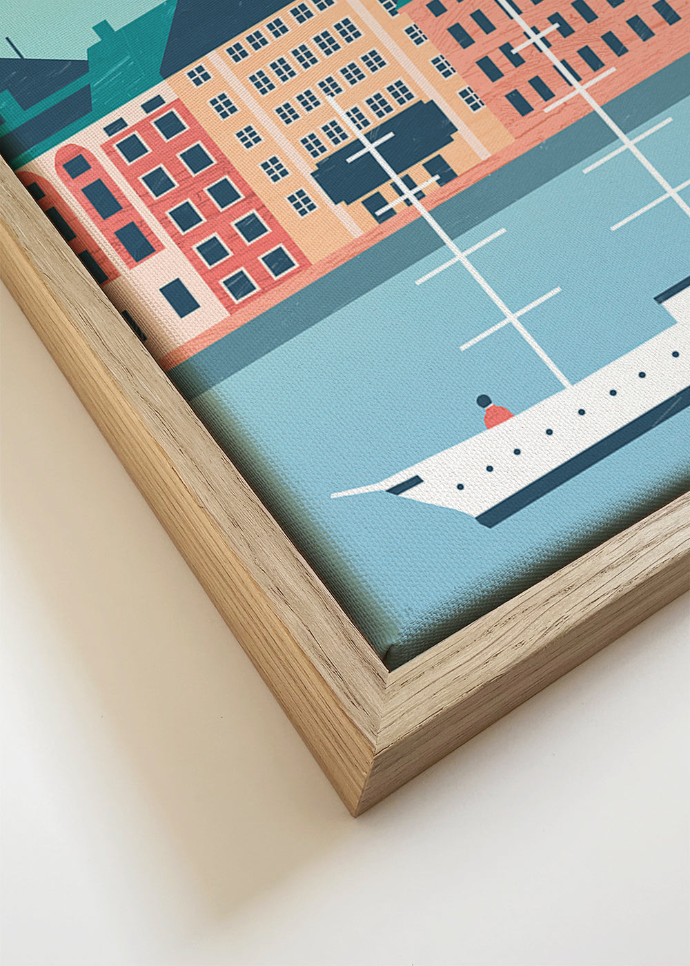 Alle unsere Rahmen werden in Spanien hergestellt. Die weißen, schwarzen und Eichenrahmen sind aus Ayous-Holz gefertigt, und die Eichenrahmen sind mit Eiche furniert, während die metallischen Rahmen aus Aluminium sind.