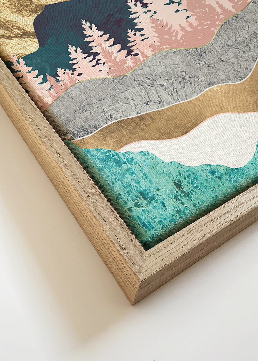 Alle unsere Rahmen werden in Spanien hergestellt. Die weißen, schwarzen und Eichenrahmen sind aus Ayous-Holz gefertigt, und die Eichenrahmen sind mit Eiche furniert, während die metallischen Rahmen aus Aluminium sind.