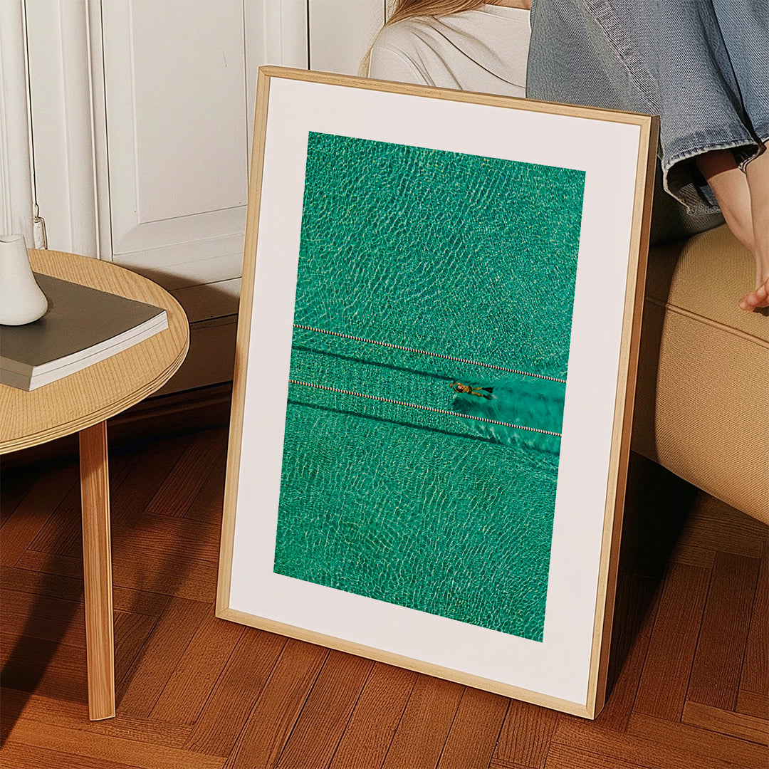 Ein Poster aus der Kollektion schwimmen-bilder und poster mit schwimmsport-motiven, von 1x, mit Nuancen Blau, und mit Bildposition Vertikal. Ein Bild sagt mehr als tausend Worte – mit unseren Fotobildern auf Leinwand oder Foto-Postern erzählen deine Wände Geschichten. Verschönere deine Inneneinrichtung mit Kunst. Das Wandbild wird mit weißem Bilderrahmen geliefert, der das Kunstwerk richtig in Szene setzt.
