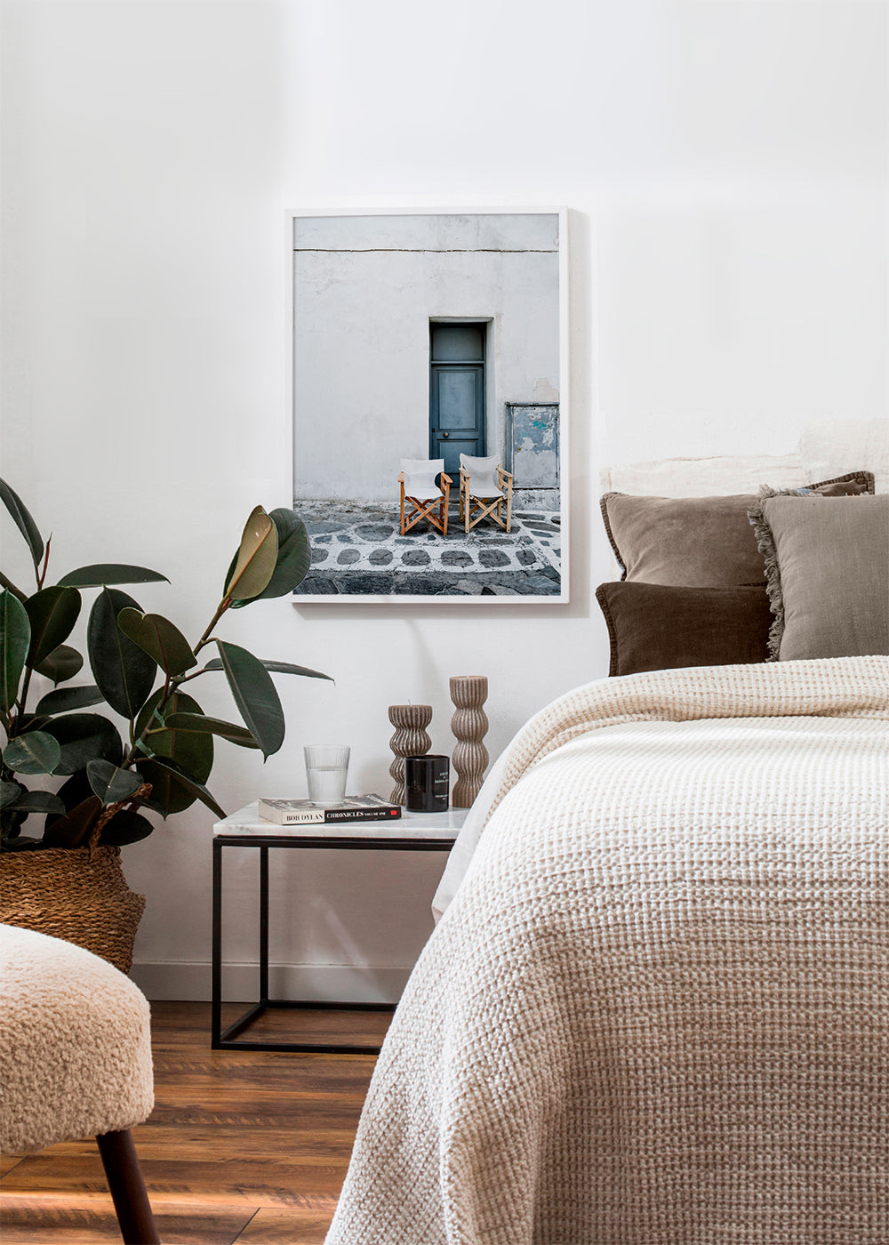 Alle unsere Rahmen werden in Spanien hergestellt. Die weißen, schwarzen und Eichenrahmen sind aus Ayous-Holz gefertigt, und die Eichenrahmen sind mit Eiche furniert, während die metallischen Rahmen aus Aluminium sind.