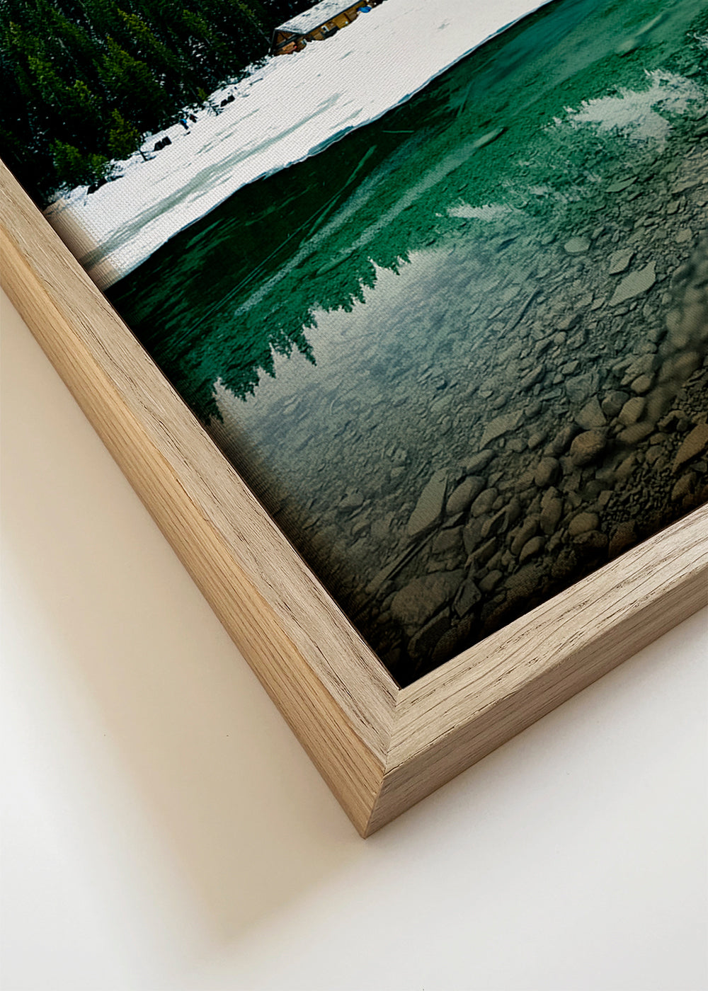 Alle unsere Rahmen werden in Spanien hergestellt. Die weißen, schwarzen und Eichenrahmen sind aus Ayous-Holz gefertigt, und die Eichenrahmen sind mit Eiche furniert, während die metallischen Rahmen aus Aluminium sind.
