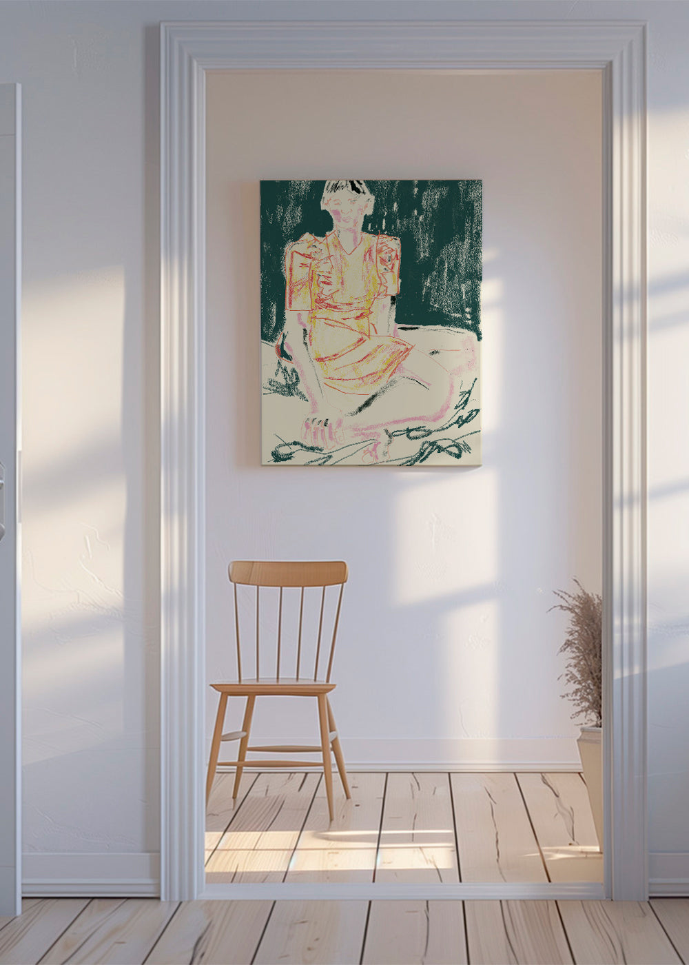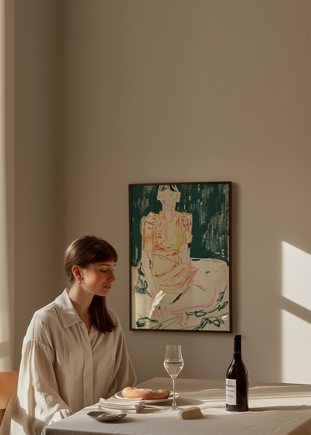 Schönes Poster aus unserer Kollektion von wandbild mit frau, Originalbild von 1x, mit Farben grün, und mit Bildposition vertikal. Wandbilder mit Zeichnungen und Skizzen verleihen jeder Inneneinrichtung einen originellen Touch. Das perfekte Kunstwerk, um deine Wohnung zu verschönern.