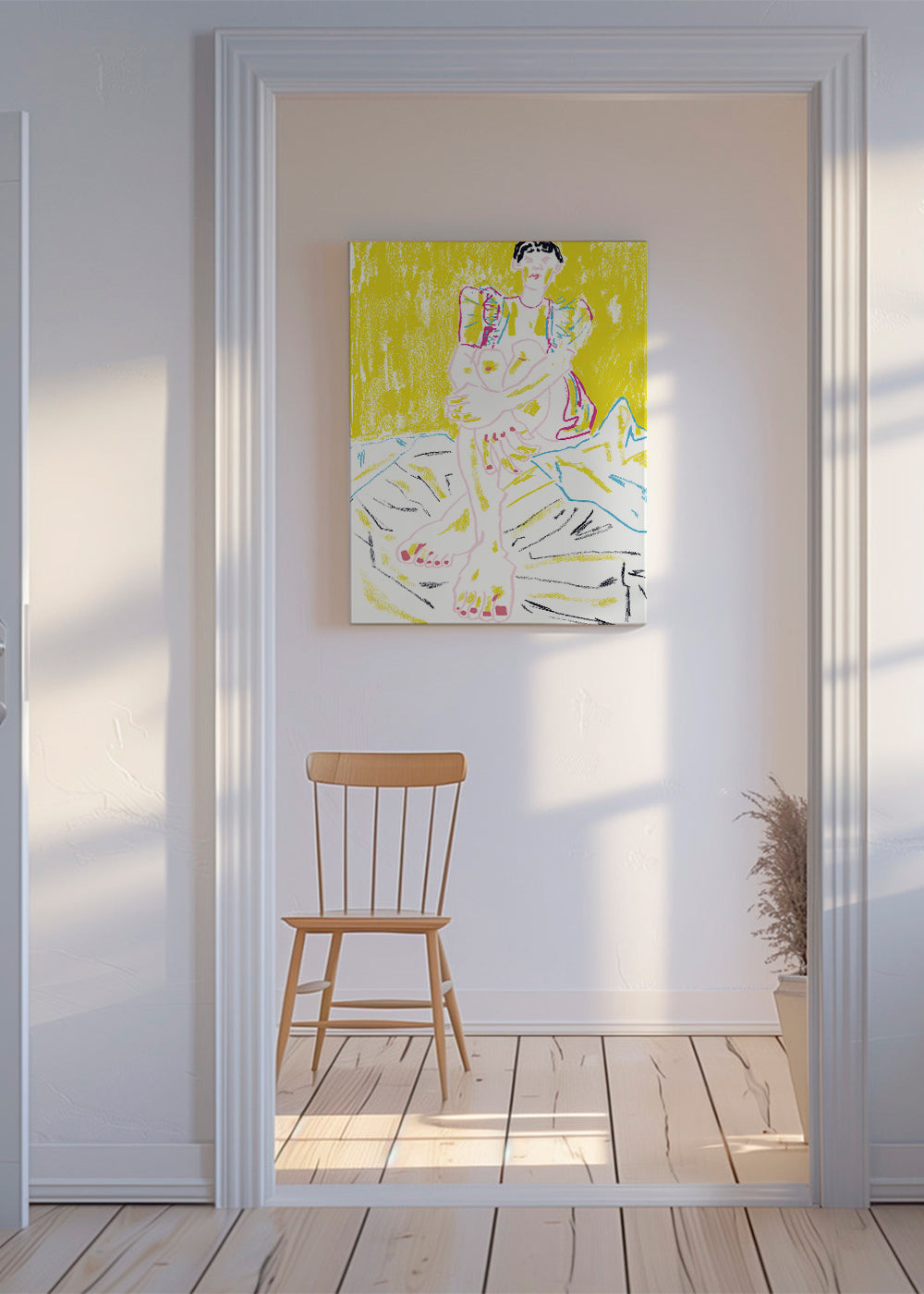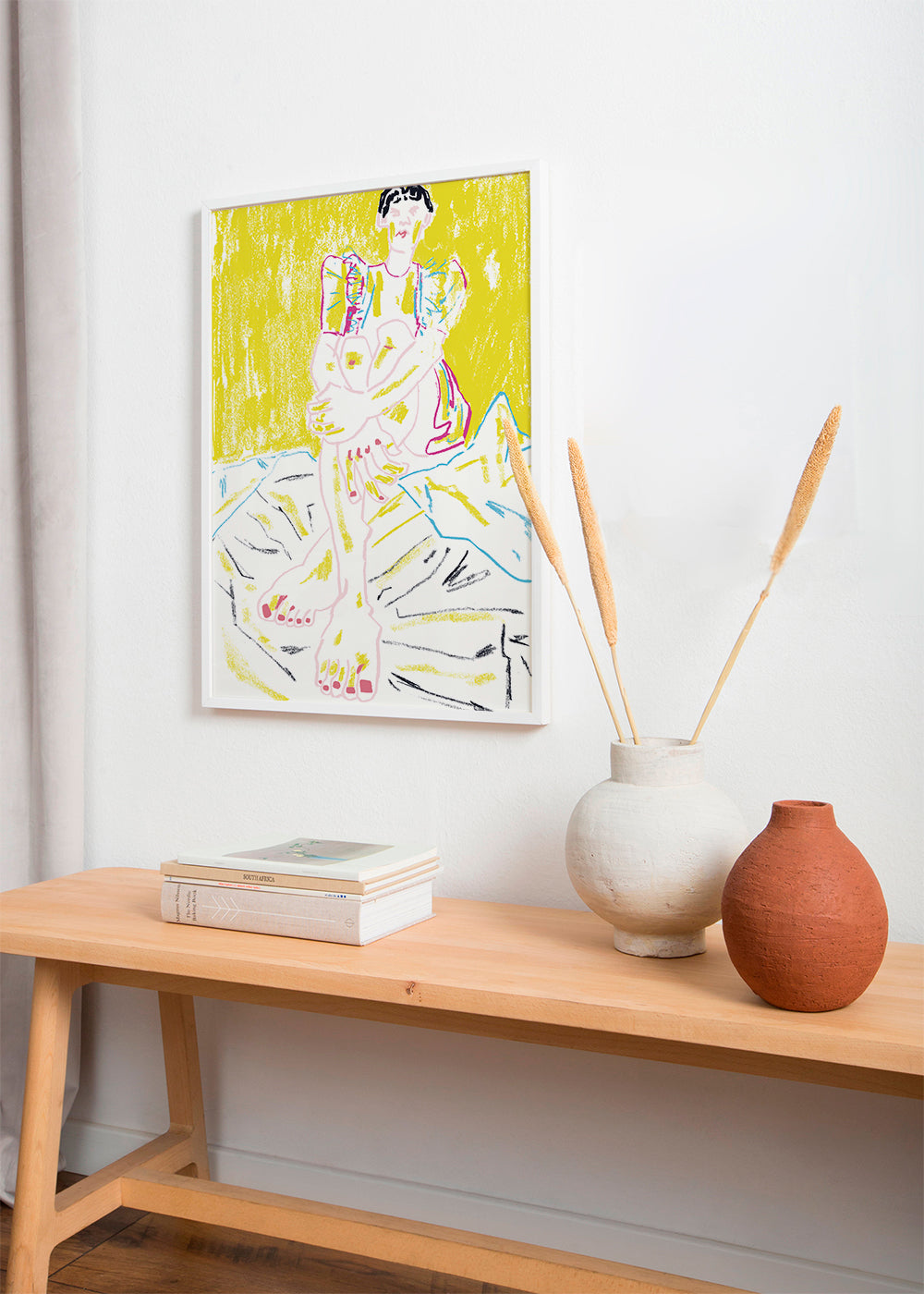 Schönes Designs aus unserer Kunstauswahl wandbild mit frau, von 1x, mit Farben gelb, und im Format vertikal. Zeichnungen und Skizzen als Poster sind perfekt, um deine Wände auf kreative Weise zu dekorieren. Gestalte besondere Bereiche in deiner Wohnung.