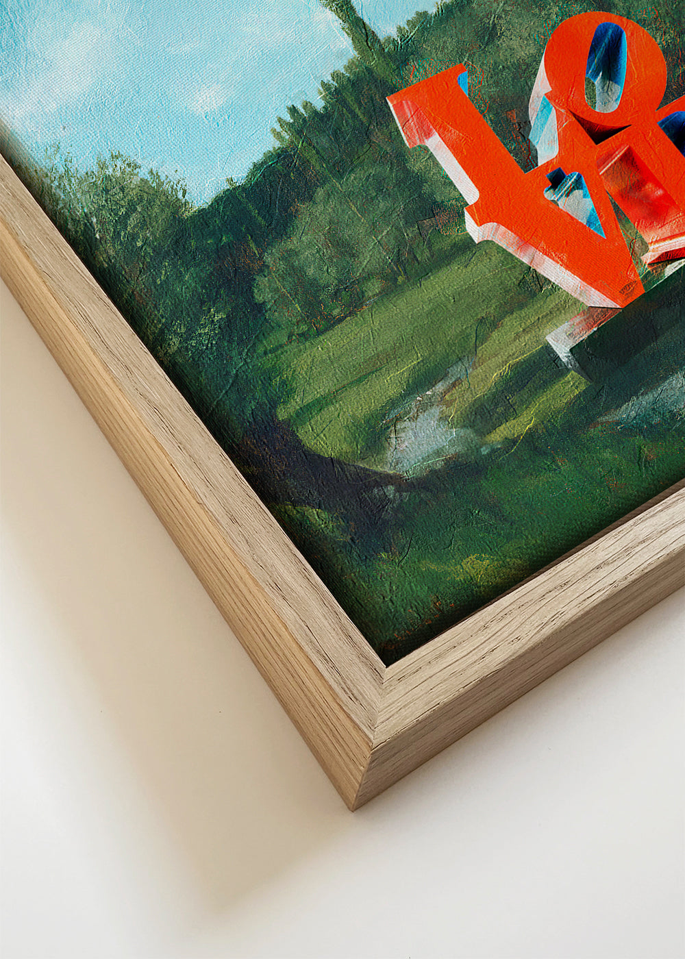 Alle unsere Rahmen werden in Spanien hergestellt. Die weißen, schwarzen und Eichenrahmen sind aus Ayous-Holz gefertigt, und die Eichenrahmen sind mit Eiche furniert, während die metallischen Rahmen aus Aluminium sind.