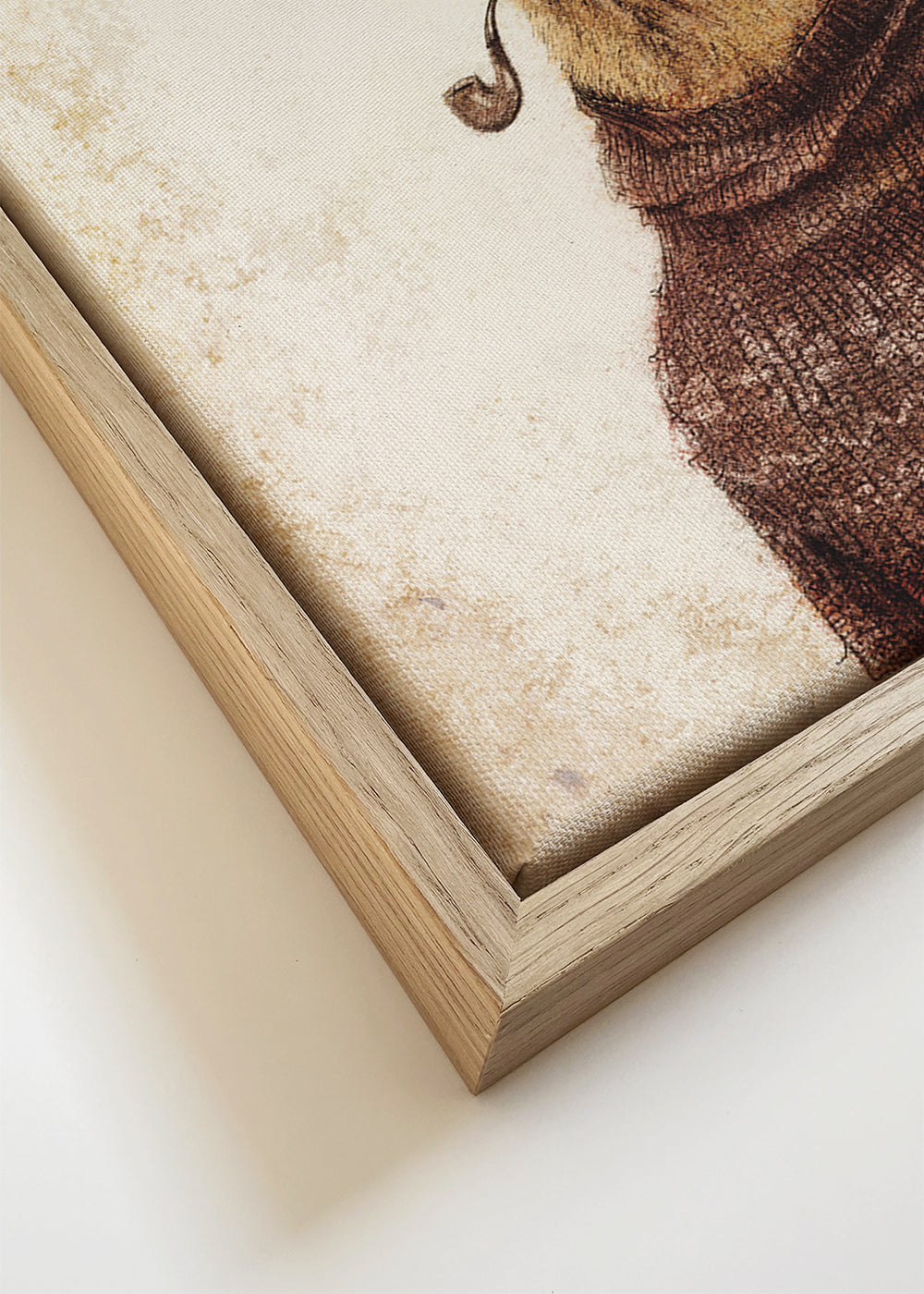 Wenn Sie die Passepartout-Option wählen, fügen wir die weiße matte Platte dem Rahmen hinzu und reduzieren das Design der Arbeit. Wählen Sie beispielsweise ein Druckformat 50x70 cm, mit eichenfarbenem Rahmen und Passepartout, reduzieren wir das Design des Druckes auf das bisherige Format (40x50cm). So passt es sich perfekt an das Innenfenster des Passepartouts an.
