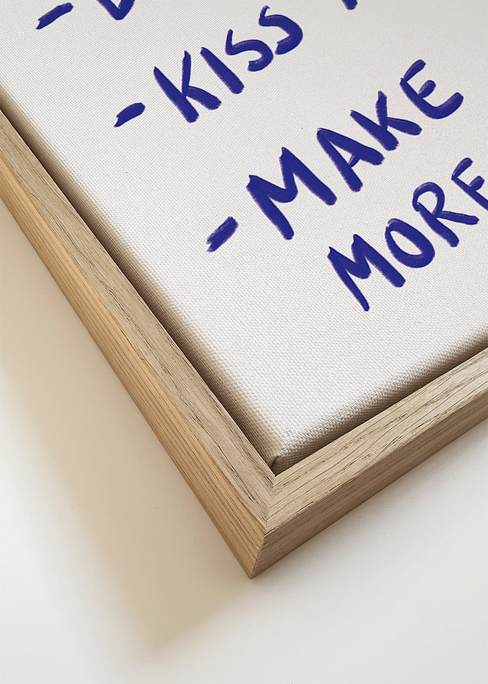 Alle unsere Rahmen werden in Spanien hergestellt. Die weißen, schwarzen und Eichenrahmen sind aus Ayous-Holz gefertigt, und die Eichenrahmen sind mit Eiche furniert, während die metallischen Rahmen aus Aluminium sind.