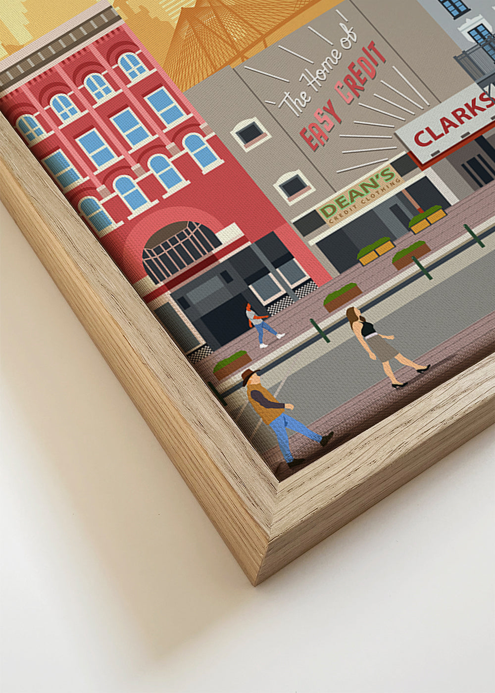 Wenn Sie die Passepartout-Option wählen, fügen wir die weiße matte Platte dem Rahmen hinzu und reduzieren das Design der Arbeit. Wählen Sie beispielsweise ein Druckformat 50x70 cm, mit eichenfarbenem Rahmen und Passepartout, reduzieren wir das Design des Druckes auf das bisherige Format (40x50cm). So passt es sich perfekt an das Innenfenster des Passepartouts an.
