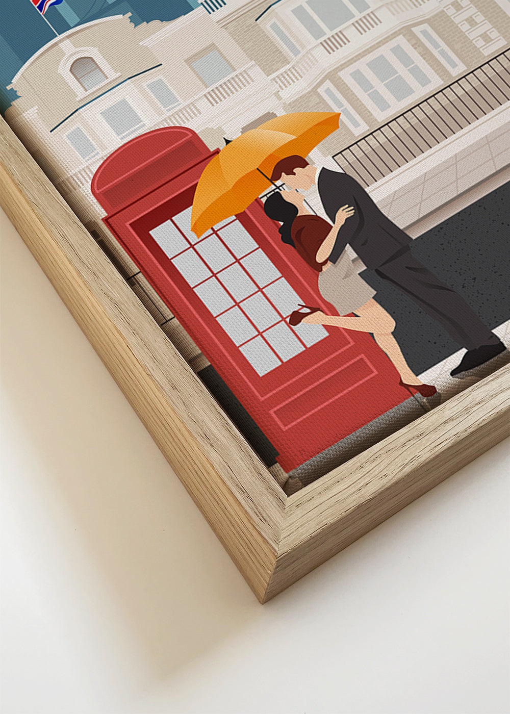 Wenn Sie die Passepartout-Option wählen, fügen wir die weiße matte Platte dem Rahmen hinzu und reduzieren das Design der Arbeit. Wählen Sie beispielsweise ein Druckformat 50x70 cm, mit eichenfarbenem Rahmen und Passepartout, reduzieren wir das Design des Druckes auf das bisherige Format (40x50cm). So passt es sich perfekt an das Innenfenster des Passepartouts an.