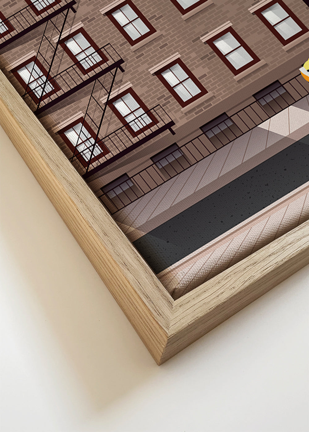 Wenn Sie die Passepartout-Option wählen, fügen wir die weiße matte Platte dem Rahmen hinzu und reduzieren das Design der Arbeit. Wählen Sie beispielsweise ein Druckformat 50x70 cm, mit eichenfarbenem Rahmen und Passepartout, reduzieren wir das Design des Druckes auf das bisherige Format (40x50cm). So passt es sich perfekt an das Innenfenster des Passepartouts an.