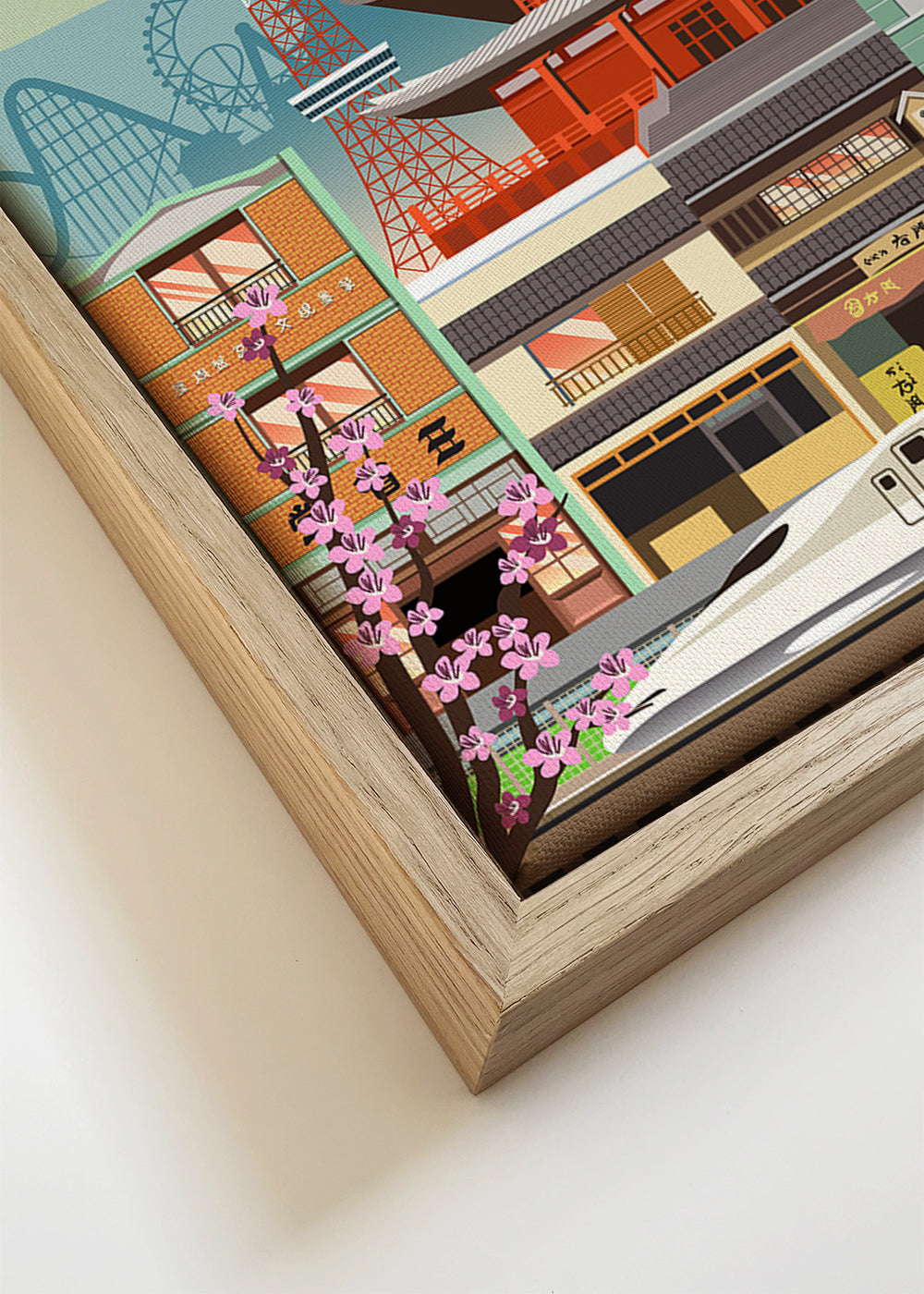 Wenn Sie die Passepartout-Option wählen, fügen wir die weiße matte Platte dem Rahmen hinzu und reduzieren das Design der Arbeit. Wählen Sie beispielsweise ein Druckformat 50x70 cm, mit eichenfarbenem Rahmen und Passepartout, reduzieren wir das Design des Druckes auf das bisherige Format (40x50cm). So passt es sich perfekt an das Innenfenster des Passepartouts an.