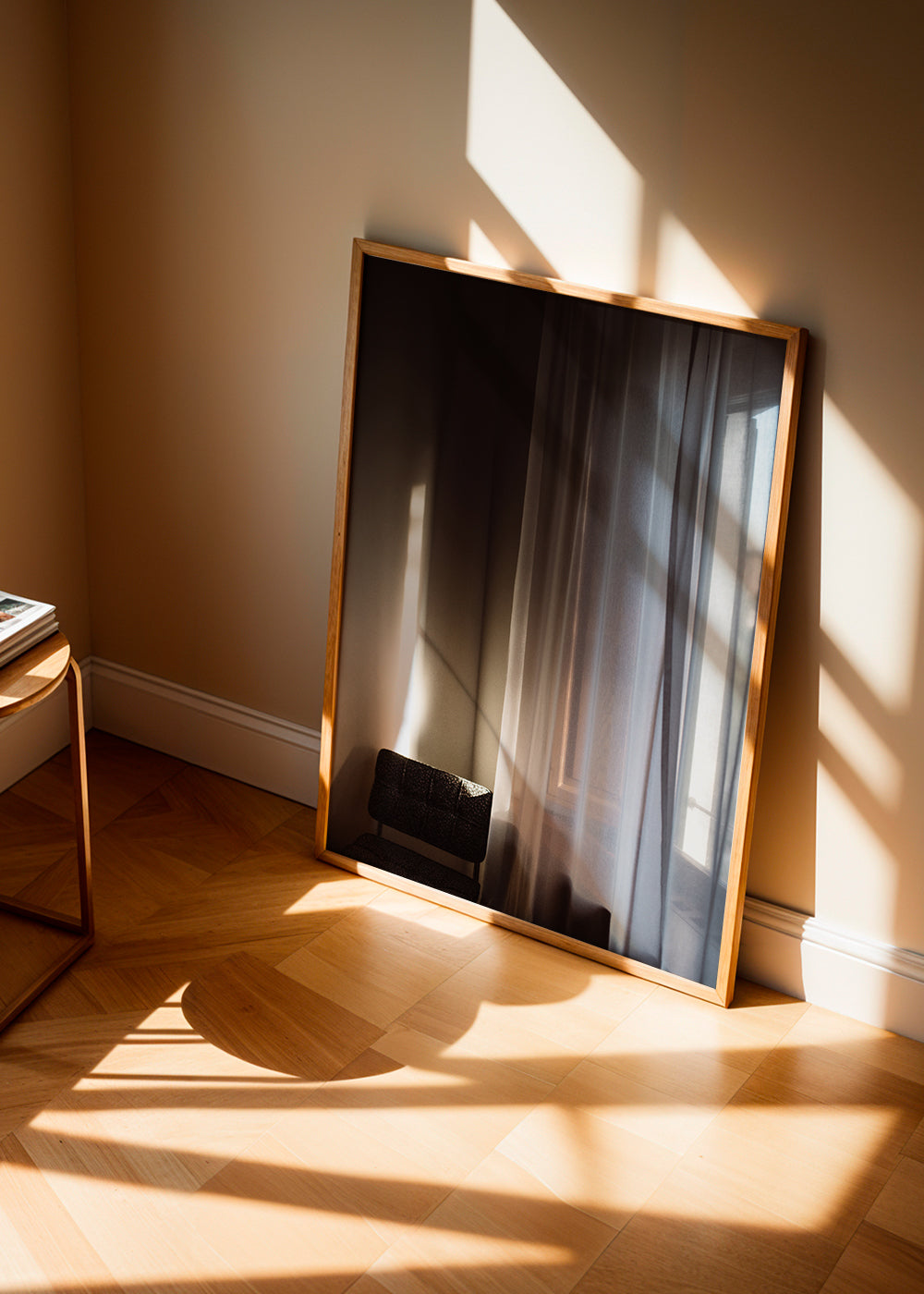 Alle unsere Rahmen werden in Spanien hergestellt. Die weißen, schwarzen und Eichenrahmen sind aus Ayous-Holz gefertigt, und die Eichenrahmen sind mit Eiche furniert, während die metallischen Rahmen aus Aluminium sind.