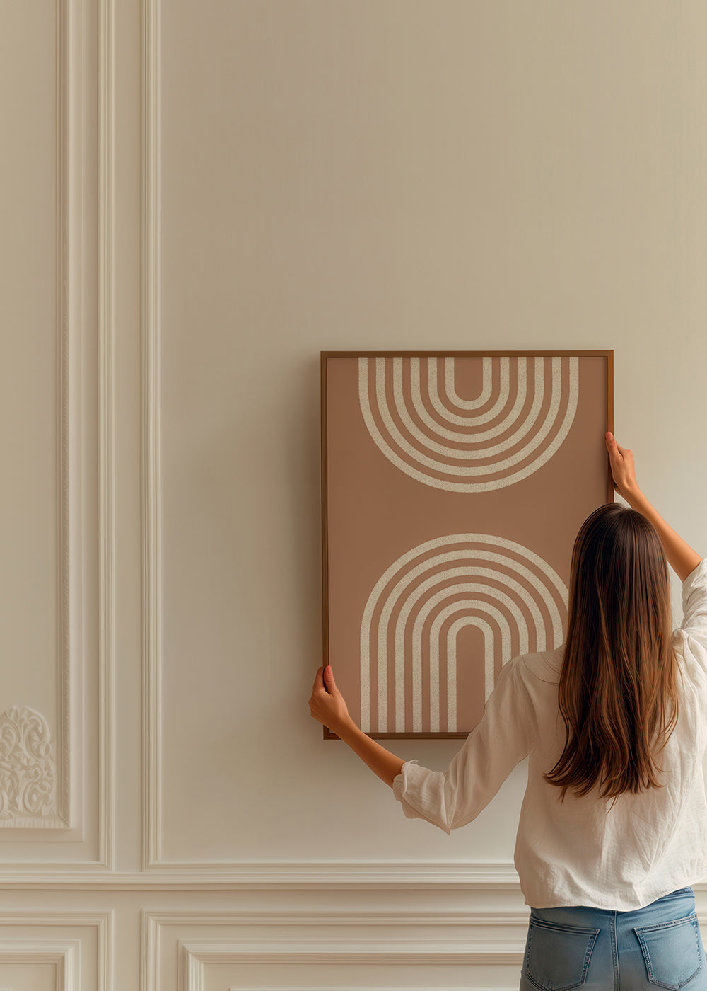 Um unsere Rahmen aufzuhängen, müssen Sie den schwarzen oder silbernen Metallbügel leicht von der Rückseite lösen. Einmal getrennt, können Sie es an dem Aufhänger aufhängen, den Sie je nach Material Ihrer Wand ausgewählt haben.