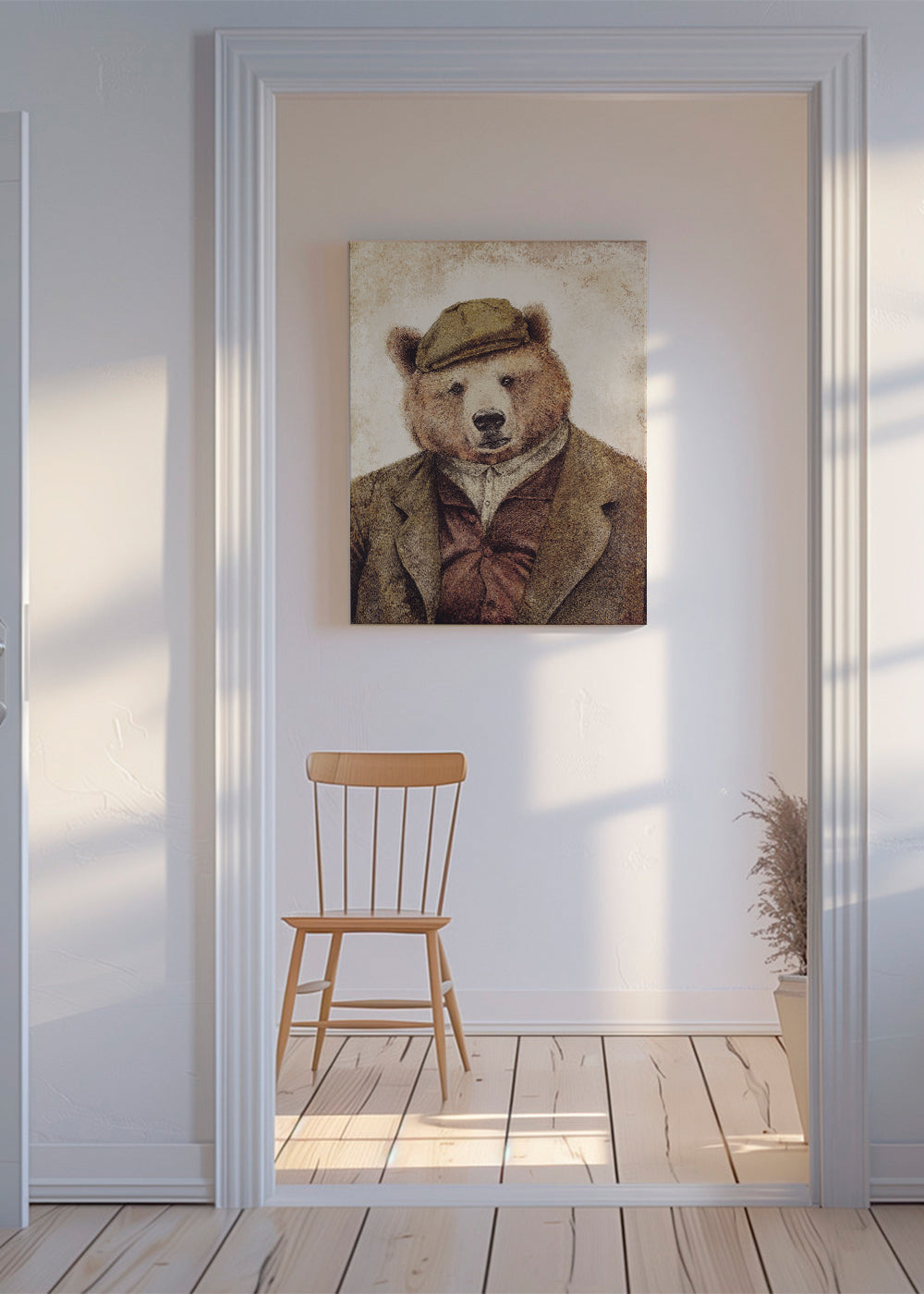 Wenn Sie die Passepartout-Option wählen, fügen wir die weiße matte Platte dem Rahmen hinzu und reduzieren das Design der Arbeit. Wählen Sie beispielsweise ein Druckformat 50x70 cm, mit eichenfarbenem Rahmen und Passepartout, reduzieren wir das Design des Druckes auf das bisherige Format (40x50cm). So passt es sich perfekt an das Innenfenster des Passepartouts an.