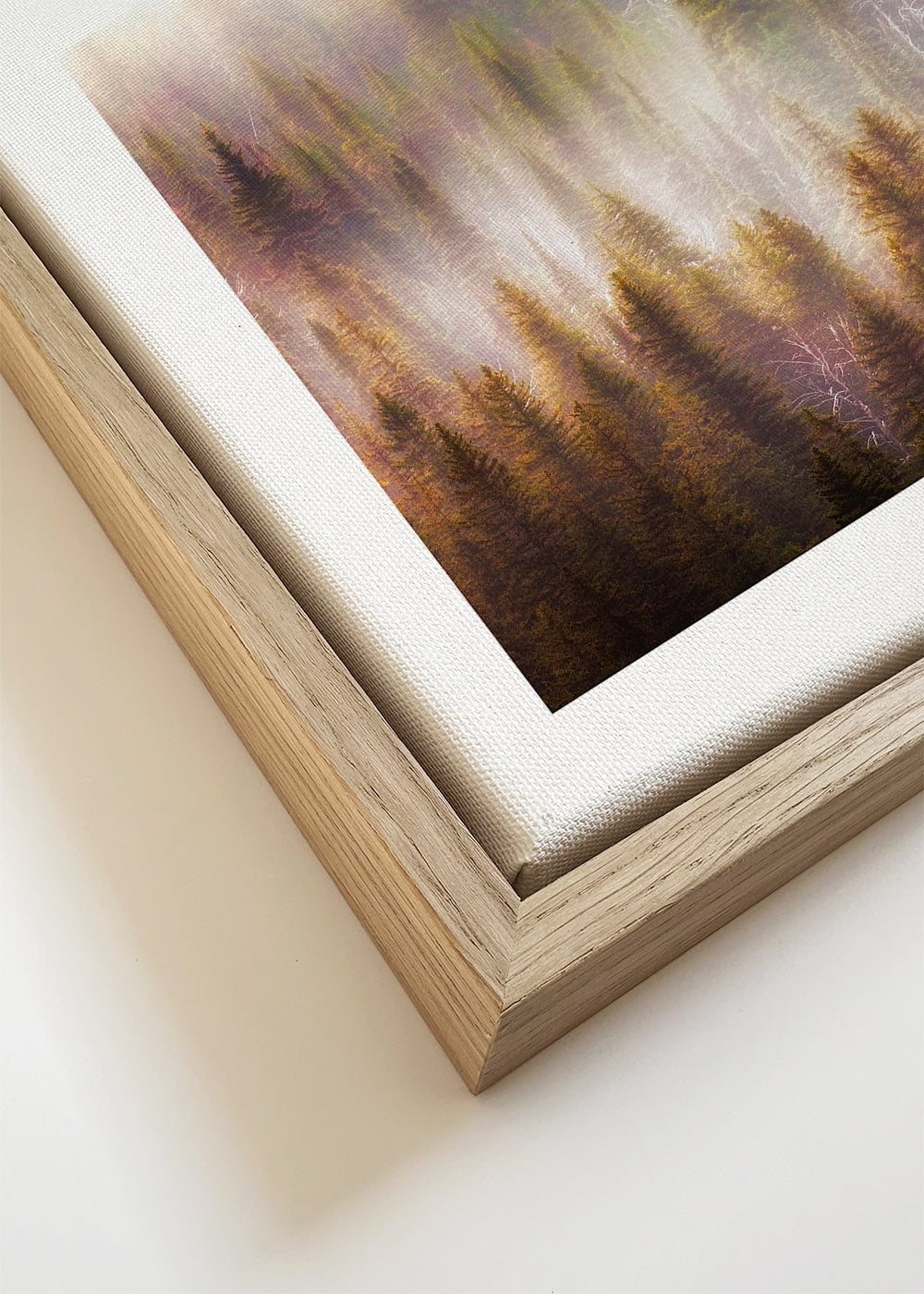 Wenn Sie die Passepartout-Option wählen, fügen wir die weiße matte Platte dem Rahmen hinzu und reduzieren das Design der Arbeit. Wählen Sie beispielsweise ein Druckformat 50x70 cm, mit eichenfarbenem Rahmen und Passepartout, reduzieren wir das Design des Druckes auf das bisherige Format (40x50cm). So passt es sich perfekt an das Innenfenster des Passepartouts an.