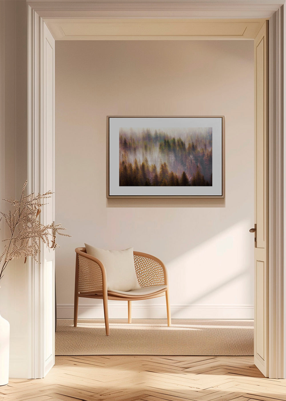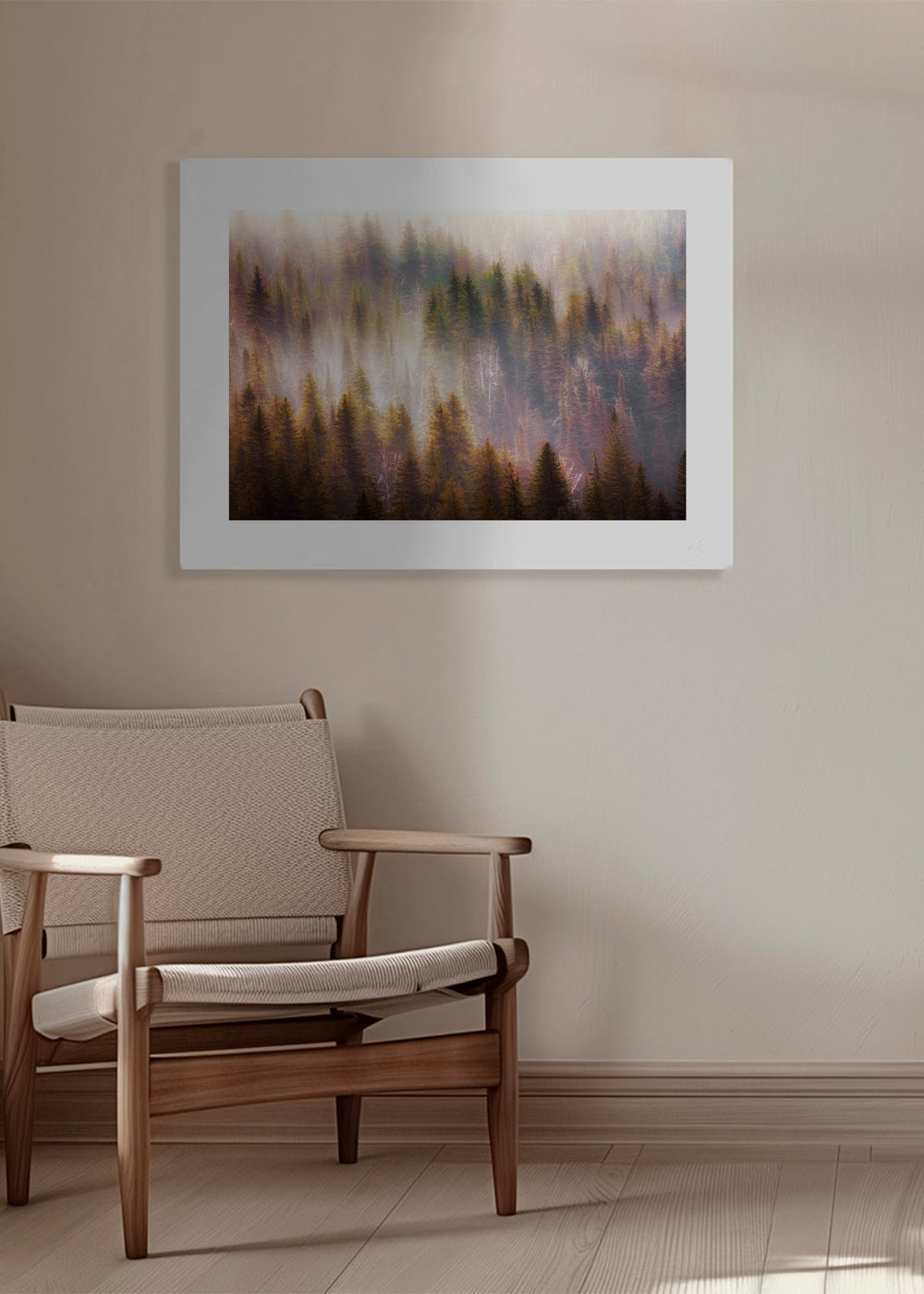 Ein Poster aus der Kollektion von poster mit wald und wald-bilder , kreiert von 1x, mit Pigmenten Grün, und im Format Horizontal. Die Ruhe und Freiheit die Wandbilder mit Landschaften verströmen ist einzigartig. Eine leere Wand ist wie eine unbemalte Leinwand. Das Wandbild wird mit weißem Bilderrahmen geliefert, der das Kunstwerk richtig in Szene setzt.