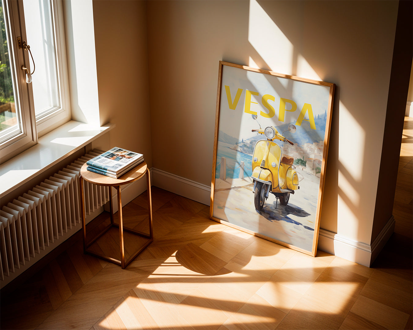 Ein Designs aus unserer Bilderauswahl motorrad-wandbild und poster, kreiert von Seven Wall Art, mit Farbnuance gelb, und geeignet für Bildpositionen vertikal. Das Wandbild im Nordic-Style passt wunderbar zu einer +skandinavischen Einrichtung+. Kreative Einrichtungsideen und Design für deine Wohnung.