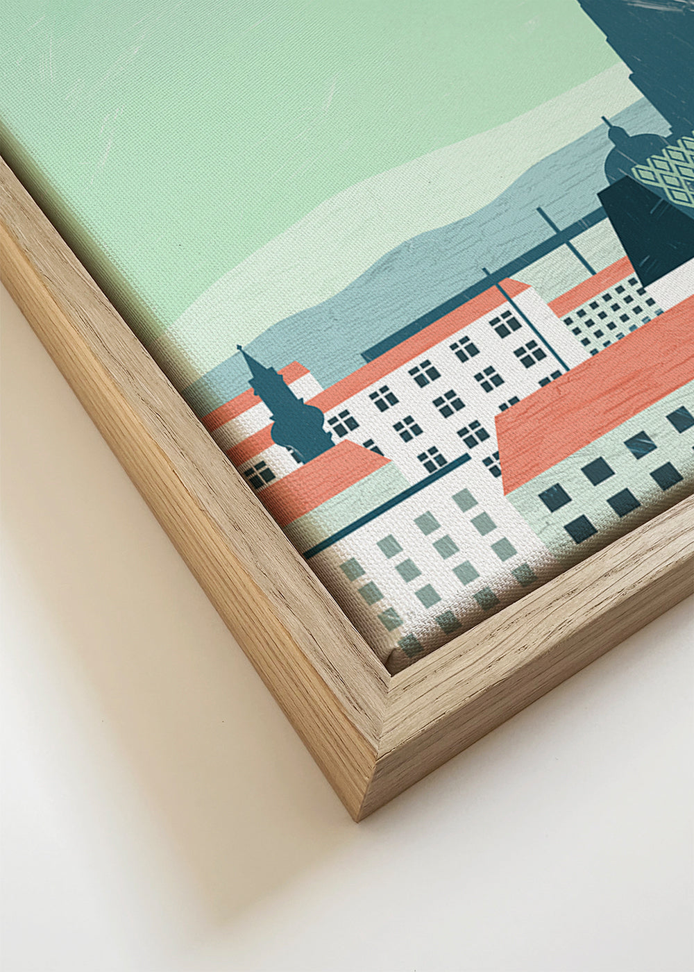 Wenn Sie die Passepartout-Option wählen, fügen wir die weiße matte Platte dem Rahmen hinzu und reduzieren das Design der Arbeit. Wählen Sie beispielsweise ein Druckformat 50x70 cm, mit eichenfarbenem Rahmen und Passepartout, reduzieren wir das Design des Druckes auf das bisherige Format (40x50cm). So passt es sich perfekt an das Innenfenster des Passepartouts an.