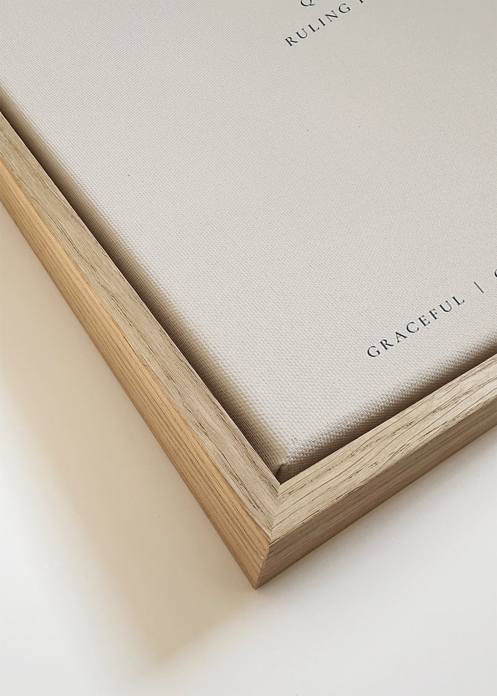 Alle unsere Rahmen werden in Spanien hergestellt. Die weißen, schwarzen und Eichenrahmen sind aus Ayous-Holz gefertigt, und die Eichenrahmen sind mit Eiche furniert, während die metallischen Rahmen aus Aluminium sind.