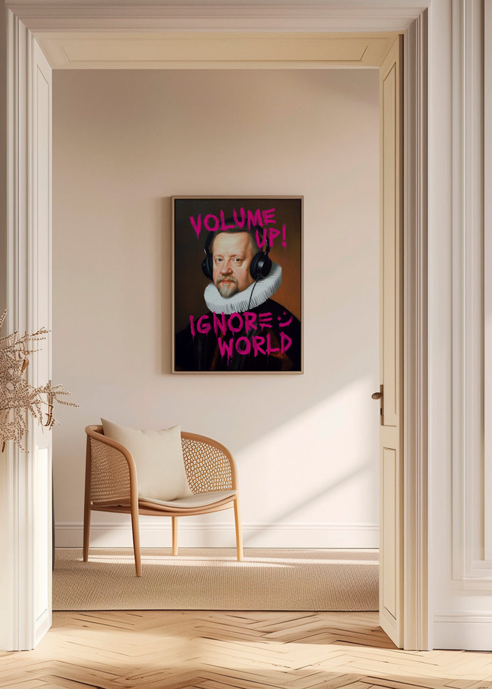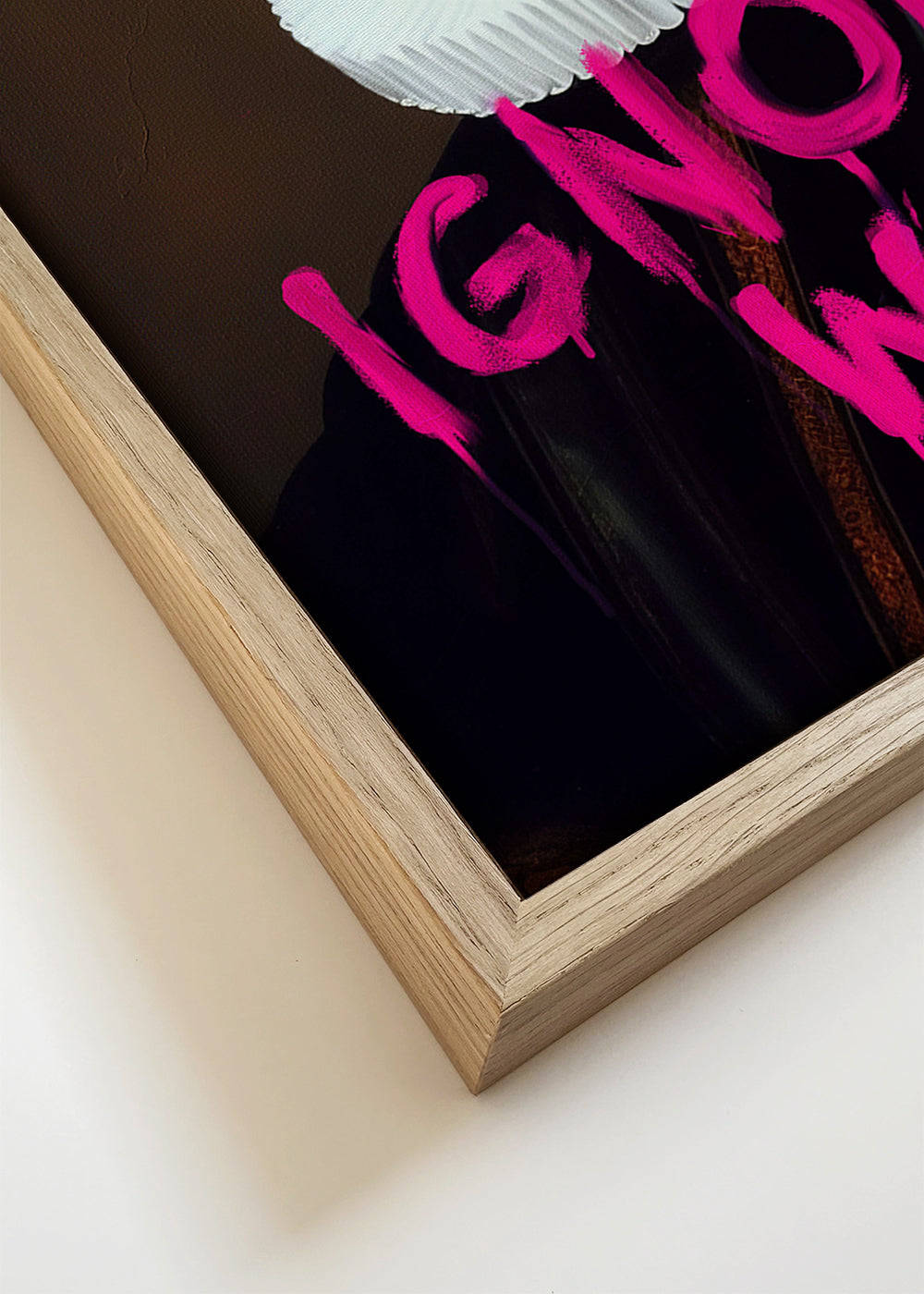 Wenn Sie die Passepartout-Option wählen, fügen wir die weiße matte Platte dem Rahmen hinzu und reduzieren das Design der Arbeit. Wählen Sie beispielsweise ein Druckformat 50x70 cm, mit eichenfarbenem Rahmen und Passepartout, reduzieren wir das Design des Druckes auf das bisherige Format (40x50cm). So passt es sich perfekt an das Innenfenster des Passepartouts an.