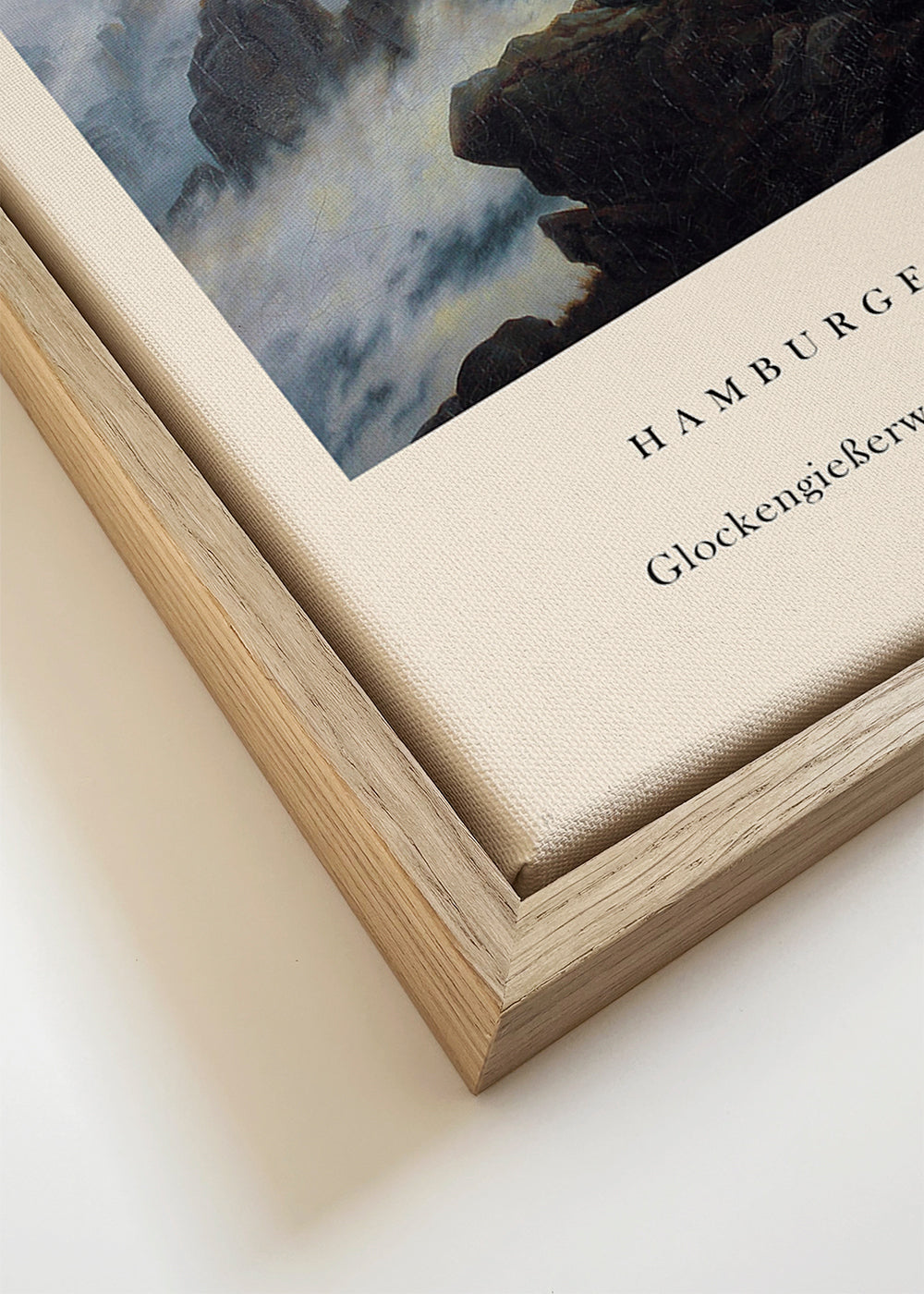 Wenn Sie die Passepartout-Option wählen, fügen wir die weiße matte Platte dem Rahmen hinzu und reduzieren das Design der Arbeit. Wählen Sie beispielsweise ein Druckformat 50x70 cm, mit eichenfarbenem Rahmen und Passepartout, reduzieren wir das Design des Druckes auf das bisherige Format (40x50cm). So passt es sich perfekt an das Innenfenster des Passepartouts an.