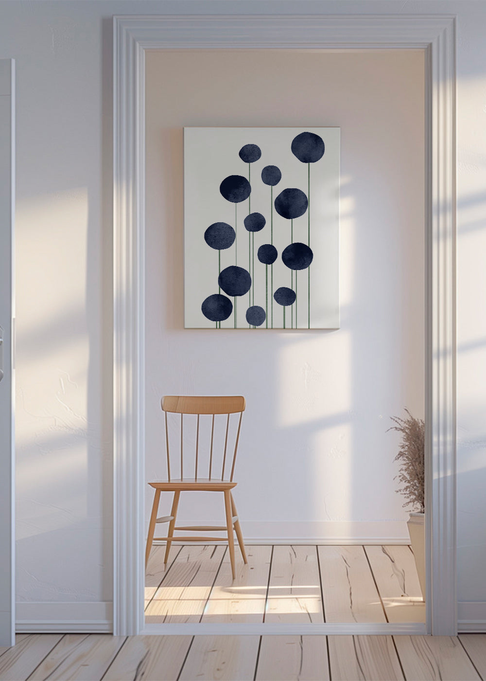 Ein Kunstwerk aus der Kollektion geometrische bilder, des Kreativschöpfers KUBISTIKA, mit Farbtönen Blau, und mit Ausrichtung Vertikal. Abstrakte und geometrische Formen erzeugen ein verspieltes, kreatives Ambiente. Elegante Wände für schicke Wohnungen.