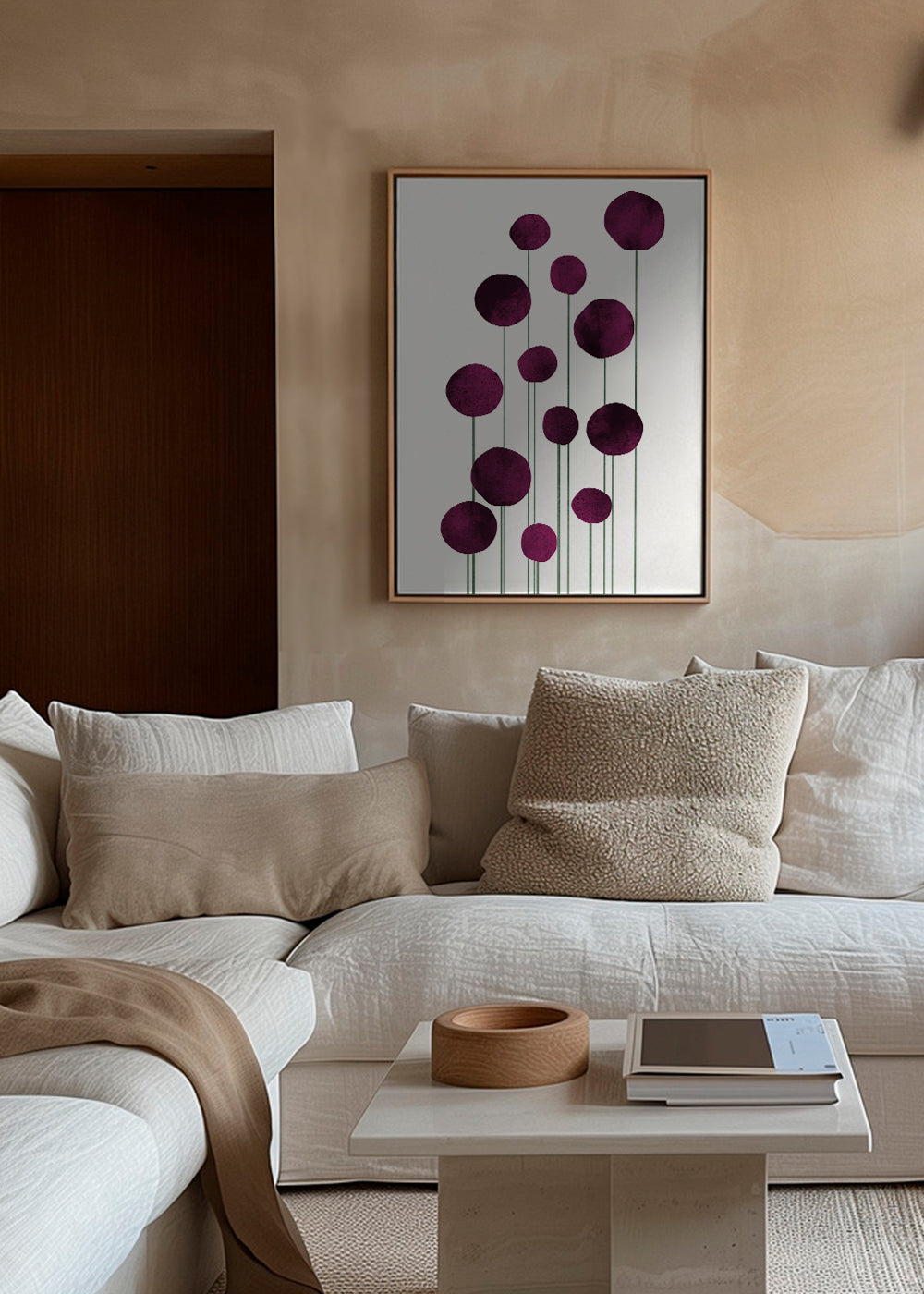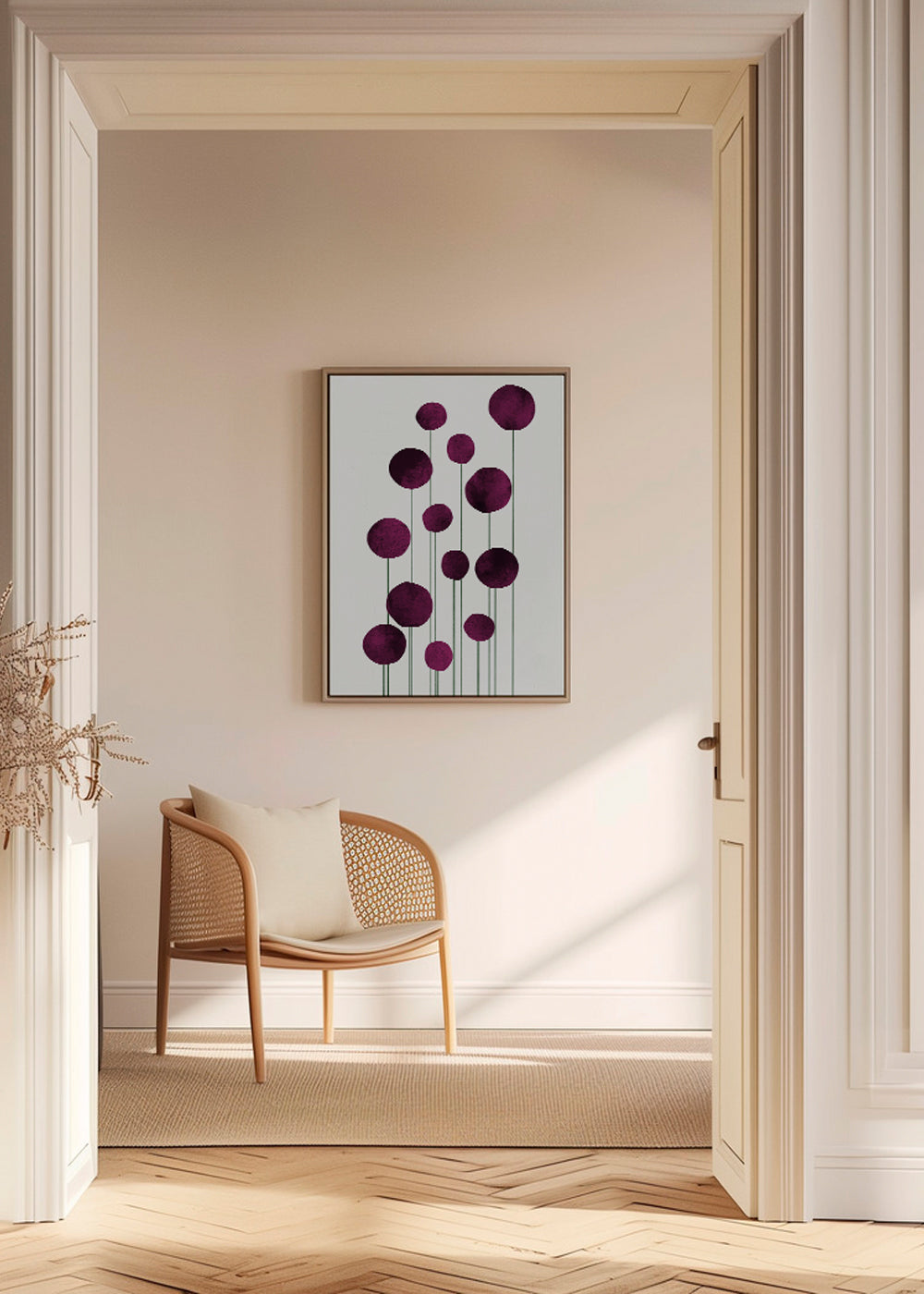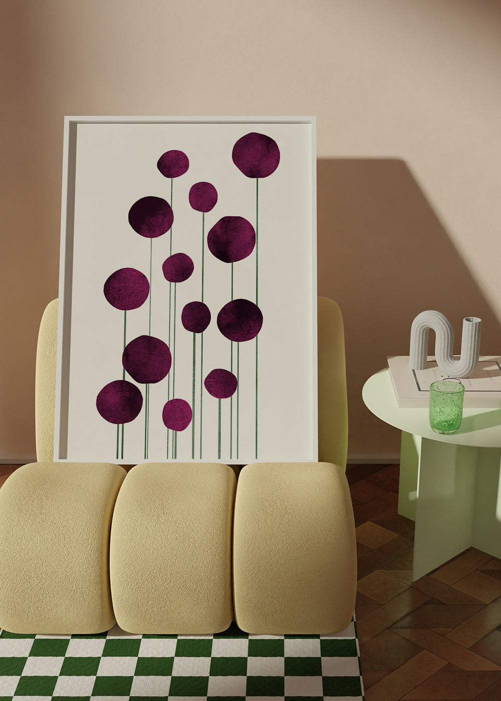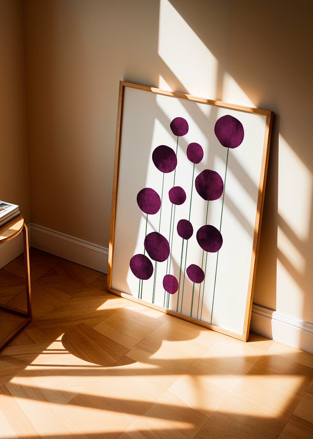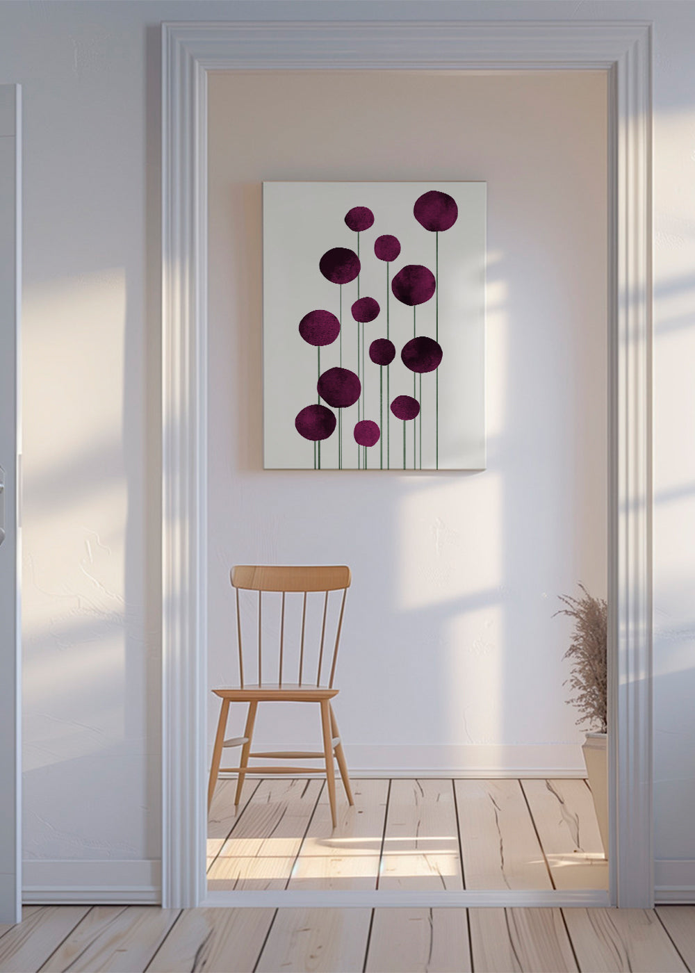 Ein Kunstdruck aus der Kollektion von wandbilder mit blumen und pflanzen, gehört zur Kollektion Kubistika, Farbtönen Purpur, und mit Bildposition Vertikal. Zeichnungen und Skizzen als Poster sind perfekt, um deine Wände auf kreative Weise zu dekorieren. Der letzte Schliff zur Einrichtung deiner Wohnung.