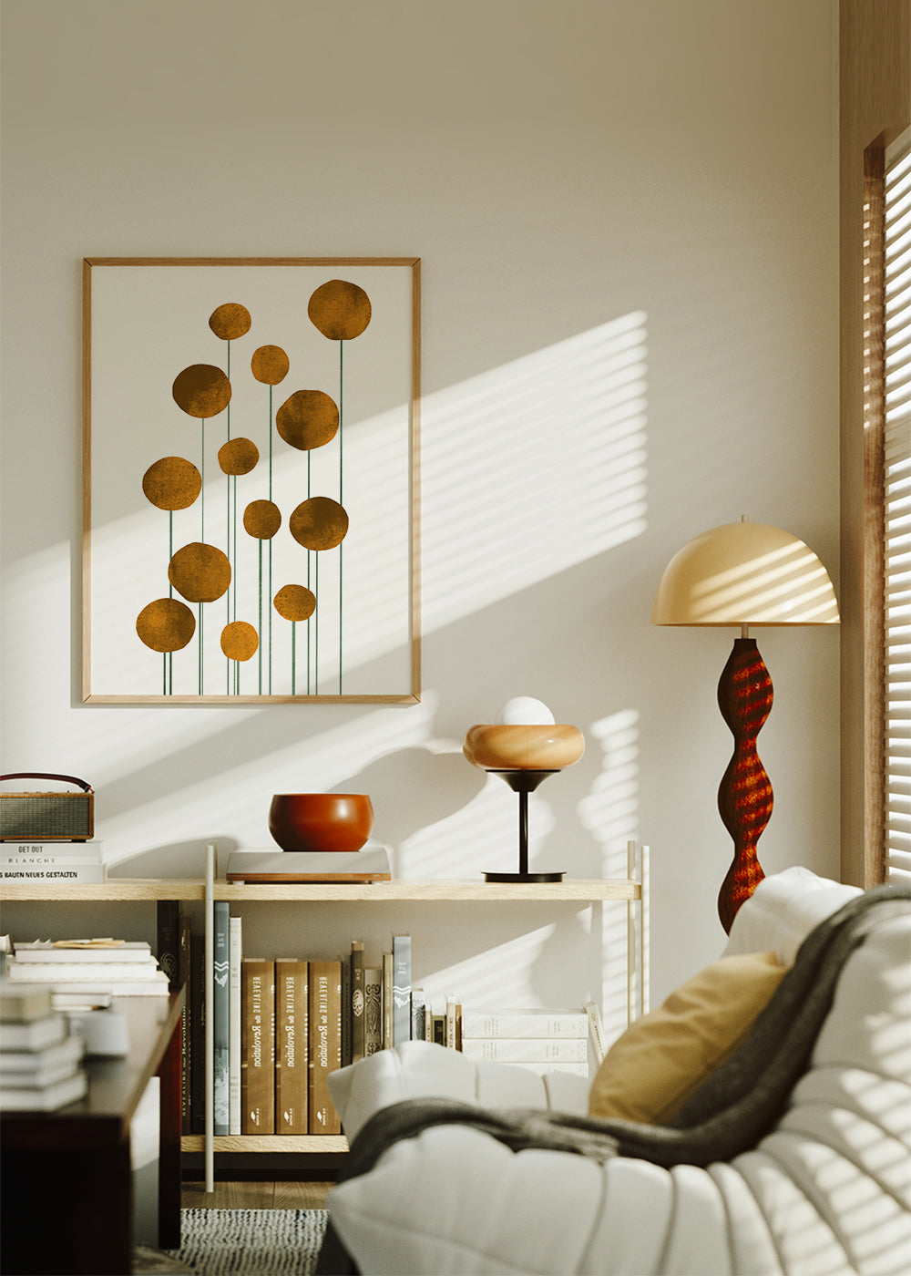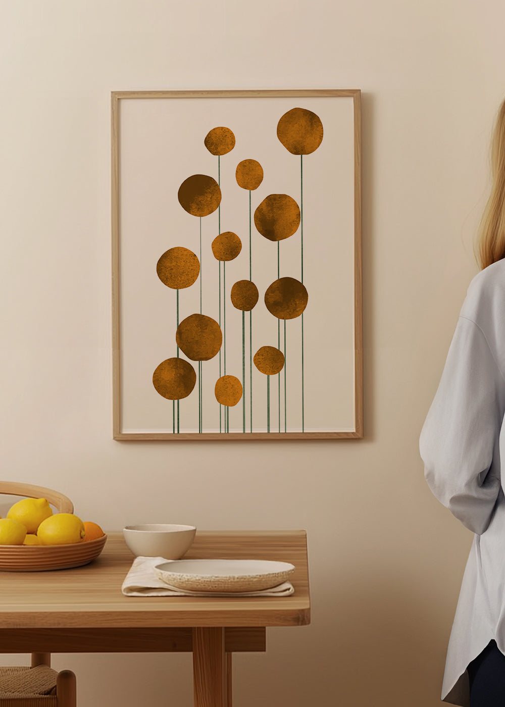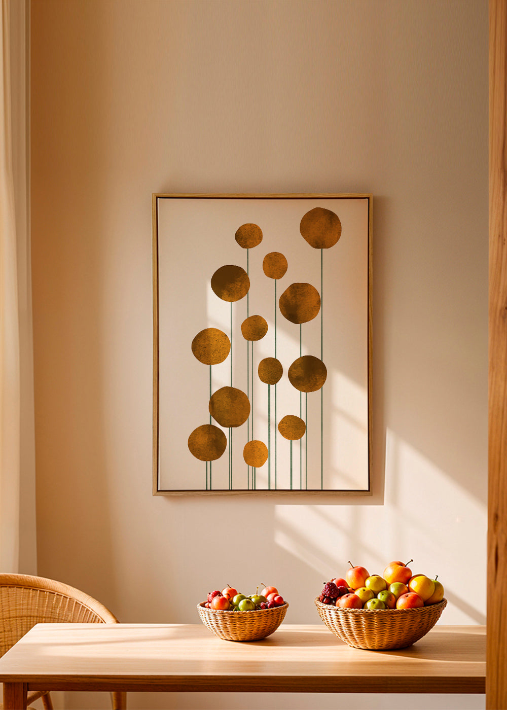 Ein Poster aus der Kollektion von wandbilder mit blumen und pflanzen, aus der Kollektion des Künstlers Kubistika, mit Pigmenten Gold, und mit Ausrichtung Vertikal. Das Wandbild ist ideal für Wohnbereiche mit künstlerischem und kreativem Flair. Unsere Poster mit Zeichnungen und Illustrationen sind ideal um leere, langweilige Wände zu dekorieren. Dekoriere die Wände deiner Wohnung.