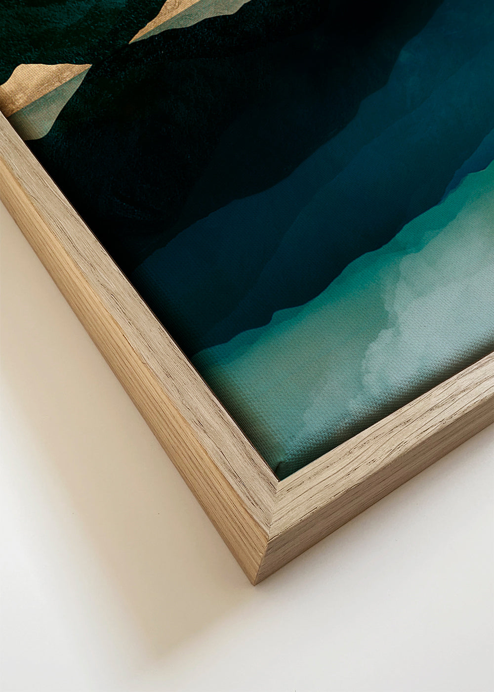 Alle unsere Rahmen werden in Spanien hergestellt. Die weißen, schwarzen und Eichenrahmen sind aus Ayous-Holz gefertigt, und die Eichenrahmen sind mit Eiche furniert, während die metallischen Rahmen aus Aluminium sind.