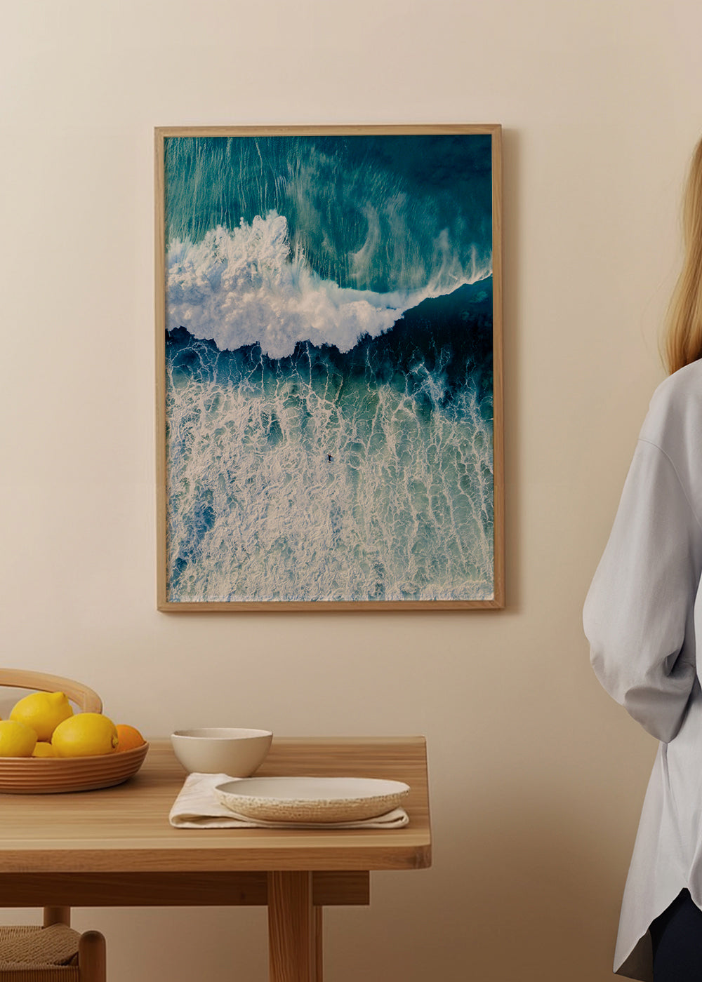Ein Poster aus der Kollektion bilder und poster mit meer, mit Farbverlauf Blau, und geeignet für Bildpositionen Vertikal. Wandbilder im skandinavischen Stil zählen weiterhin zu den aktuellen Inneneinrichtungstrends. Verschönere deine Wände mit Wandbilder-Deko.