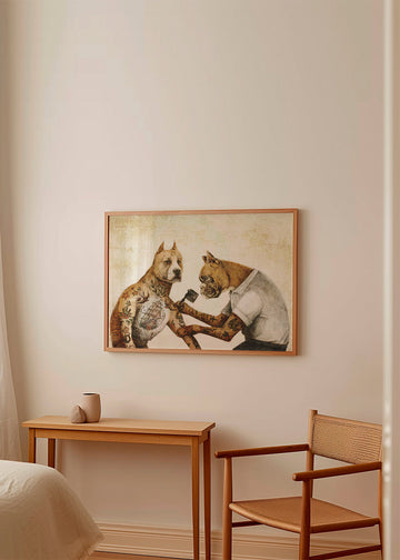 Wenn Sie die Passepartout-Option wählen, fügen wir die weiße matte Platte dem Rahmen hinzu und reduzieren das Design der Arbeit. Wählen Sie beispielsweise ein Druckformat 50x70 cm, mit eichenfarbenem Rahmen und Passepartout, reduzieren wir das Design des Druckes auf das bisherige Format (40x50cm). So passt es sich perfekt an das Innenfenster des Passepartouts an.