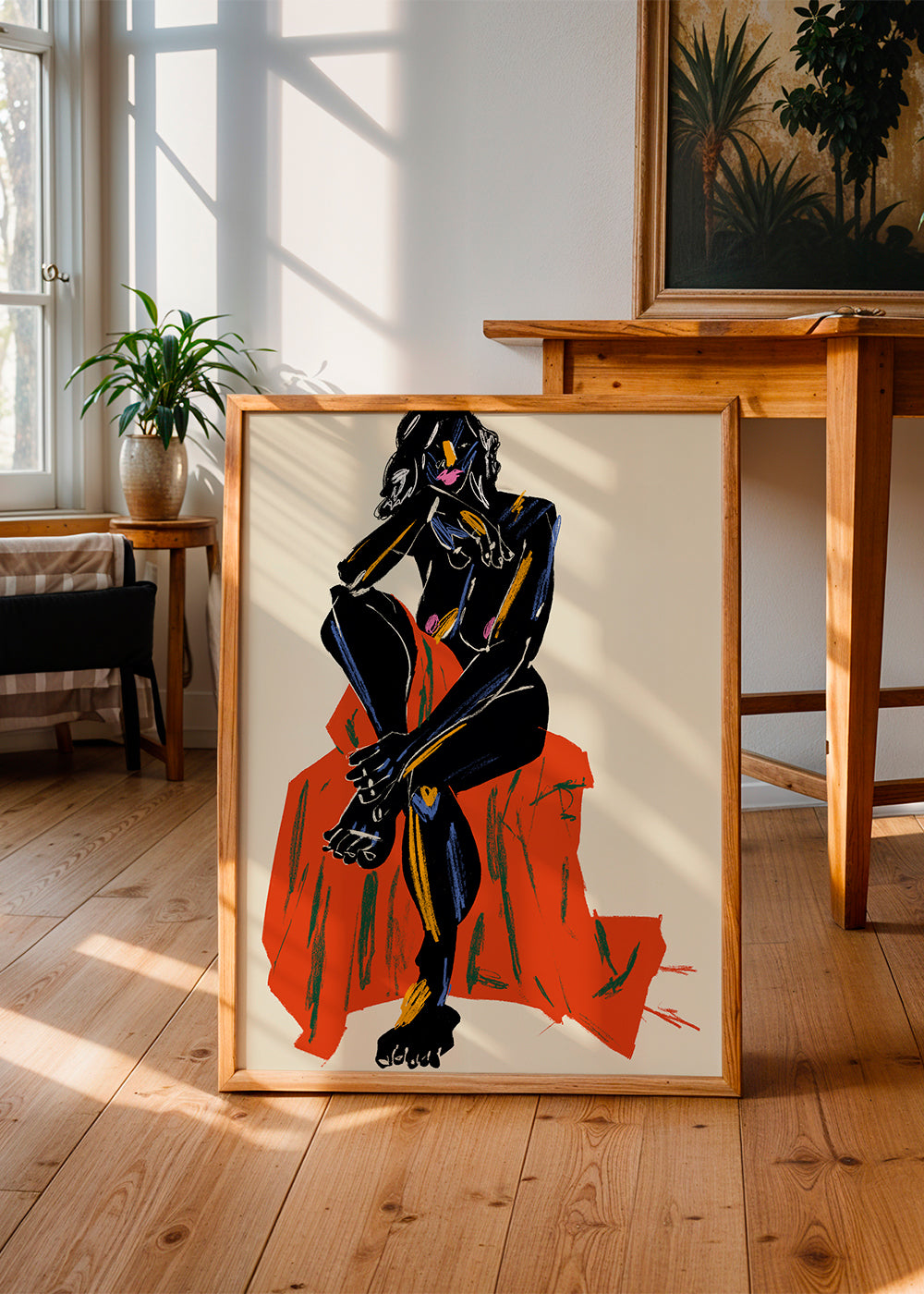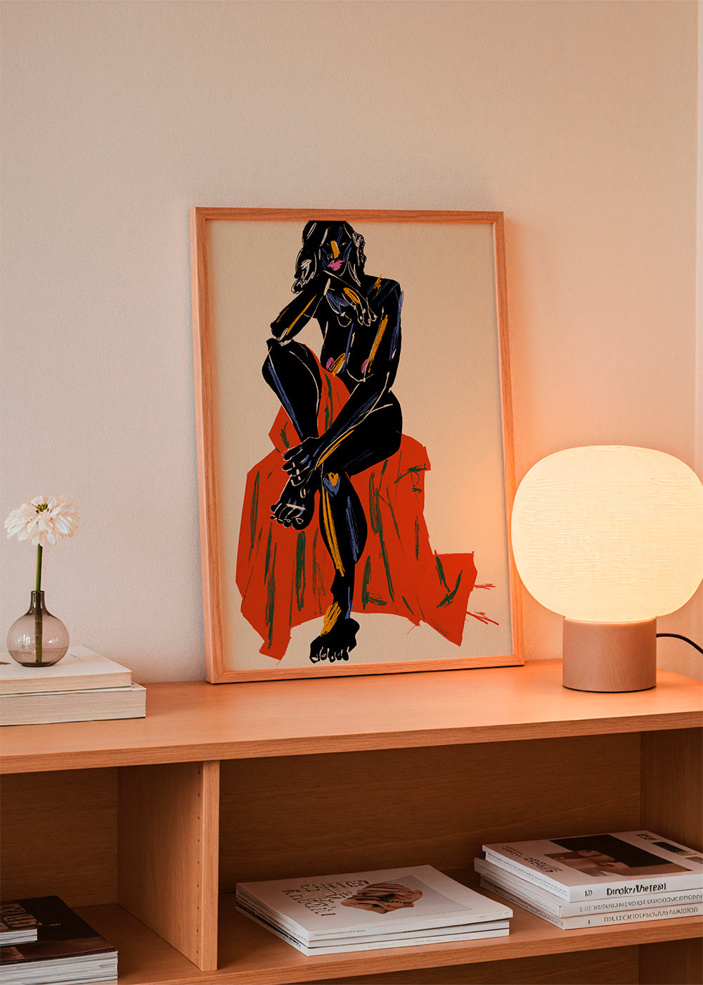 Dieses Poster gehört zum Thema wandbild mit frau, aus der Kollektion des Künstlers 1x, mit Nuancen rot, und mit Ausrichtung vertikal. Es ist eine schlichte Zeichnung mit sauberer Linienführung – kombiniere sie mit anderen Strich- und Linienzeichnungen für eine künstlerische Bilderwand. Dekoriere die Wände deiner Wohnung mit Wandbildern.