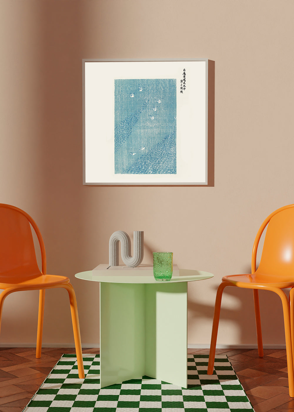 Scandi-Poster Yellow Woodblock print from Yatsuo no tsubaki by Taguchi Tomoki - Square