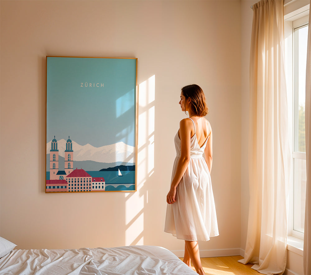 Wenn Sie einen unserer Drucke mit einem der von uns angebotenen Rahmen kombinieren, erhalten Sie die Drucke gerahmt und fertig zum Aufhängen. Falls Sie den Druck und den Rahmen separat kaufen oder Ihre eigenen Drucke hinzufügen möchten, öffnen Sie die hinteren Enden, entfernen Sie die Abdeckung und legen Sie Ihr Blatt bei. Ganz einfach!